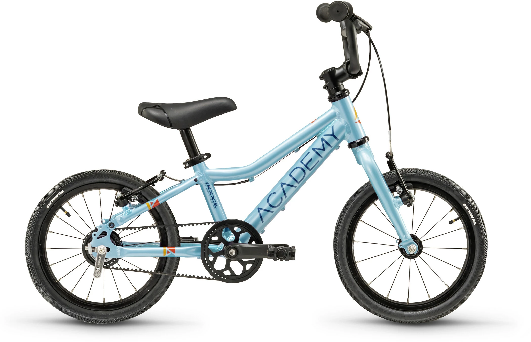 “Engineered by S’COOL”. Udviklerne af ACADEMY Bikes har i samarbejde med det tyske institut for ortopædi, osteopati og sportsmedicin (DIOOS) under ledelse af Dr. med. Andreas Elsner, er det lykkedes at udvikle ultralette juniorcykler, der opfylder de nyeste ergonomiske krav. Alle modeller er lettere end 40 % af et normalt barns vægt, og rammerne med dybe og smalle bundbeslag giver en stram, børnevenlig benstyring. Korte pedaler og den oprejste siddestilling gør det muligt at have fødderne på jorden hele tiden og stadig sikre en ergonomisk knæposition under kørslen. ACADEMY-cykler er kompromisløst gennemtænkte med børnevenlige komponenter, der er designet til daglig brug i byerne og alligevel har et moderne og cool design.