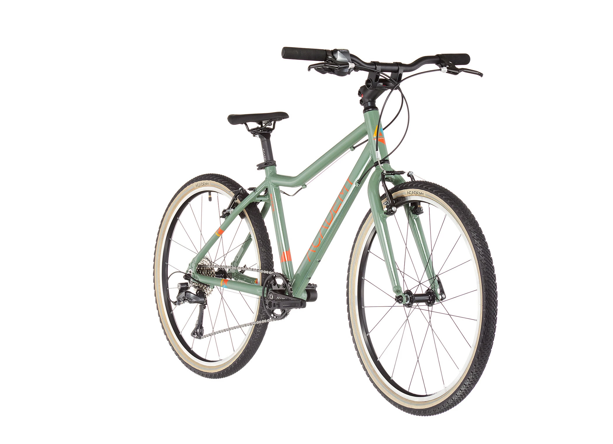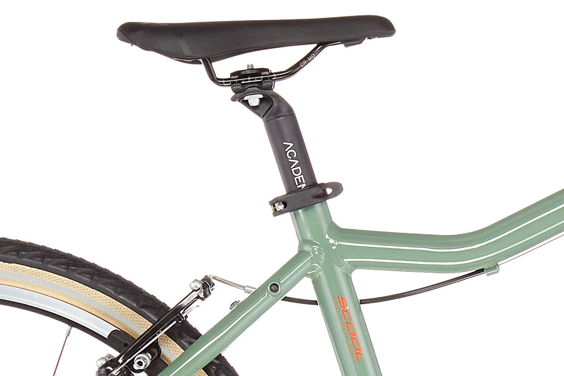“Engineered by S’COOL”. Udviklerne af ACADEMY Bikes har i samarbejde med det tyske institut for ortopædi, osteopati og sportsmedicin (DIOOS) under ledelse af Dr. med. Andreas Elsner, haft succes med at udvikle ultralette juniorcykler, der opfylder alle de nyeste ergonomiske krav. Alle modeller er lettere end 40 % af et gennemsnitligt barns vægt, og rammerne med dybe og smalle bundbeslag giver en stram, børnevenlig styring med benene. Korte pedaler og den oprejste siddestilling gør det muligt at have fødderne på jorden hele tiden og stadig sikre en ergonomisk knæposition under kørslen. ACADEMY-cykler er kompromisløst gennemtænkte med børnevenlige komponenter, der er designet til daglig brug i byerne, men alligevel har et moderne og cool design. Fra 20″ og opefter er alle modellerne udstyret med Shimano Claris-gearsystem. Det holdbare 8-gear drev giver optimal geargradation for børn og kræver desuden meget lidt vedligeholdelse. De enkle og intuitive DUAL CONTROL-gearhåndtag sikrer et højt niveau af kørekomfort. Det nyudviklede Veetire Rail-foldedæk med refleksring giver de bedste rulleegenskaber med perfekt vejgreb og høj trafiksikkerhed.