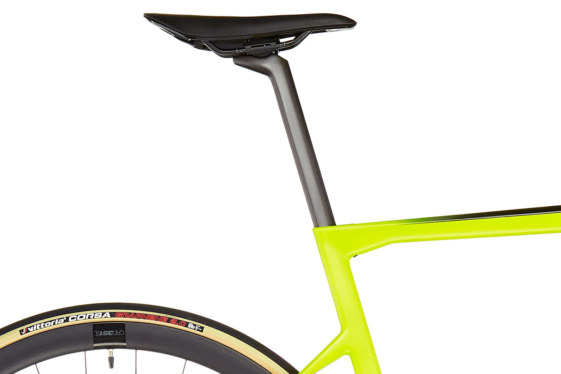 Forbedret design af sadelpinden, der eliminerer overskydende materiale, optimerer aerodynamikken og giver yderligere eftergivelighed.