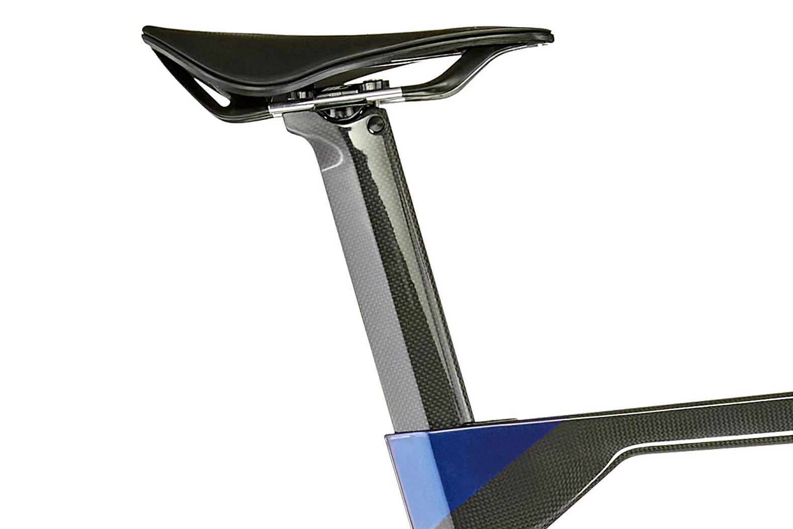 Man kan se den aerodynamiske optimering ved første øjekast: Sædet og det forreste nedre rør omslutter dækkene tæt, ligesom på en racercykel.