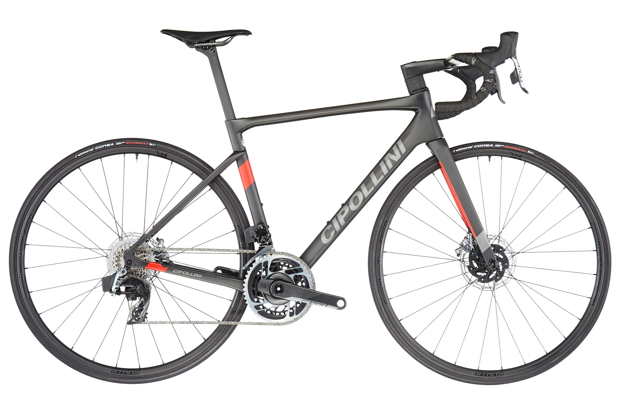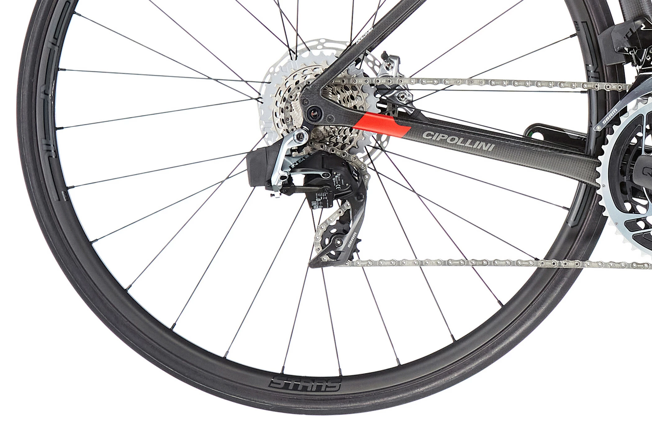 Mens traditionsbevidste italienske mærker længe har været tilbageholdende med at montere skivebremser på racercykler, bruger Cipollini nu også de kraftfulde hydrauliske skivebremser af mærket SRAM.
