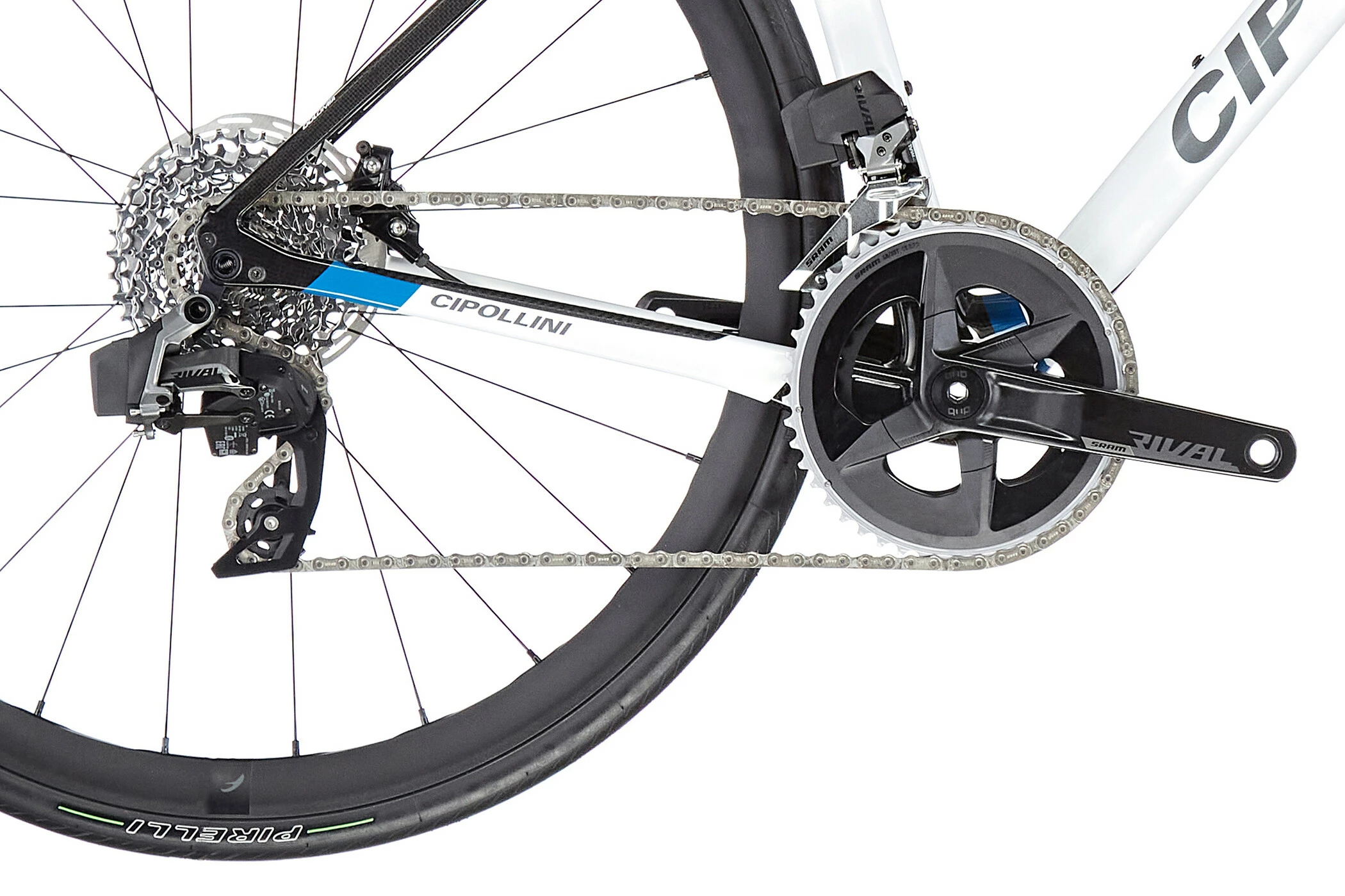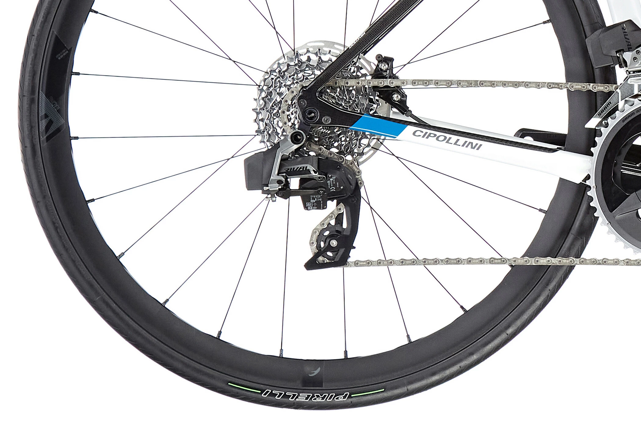 Mens traditionsbevidste italienske mærker længe har været tilbageholdende med at montere skivebremser på racercykler, bruger Cipollini nu også de kraftfulde hydrauliske skivebremser af mærket SRAM.