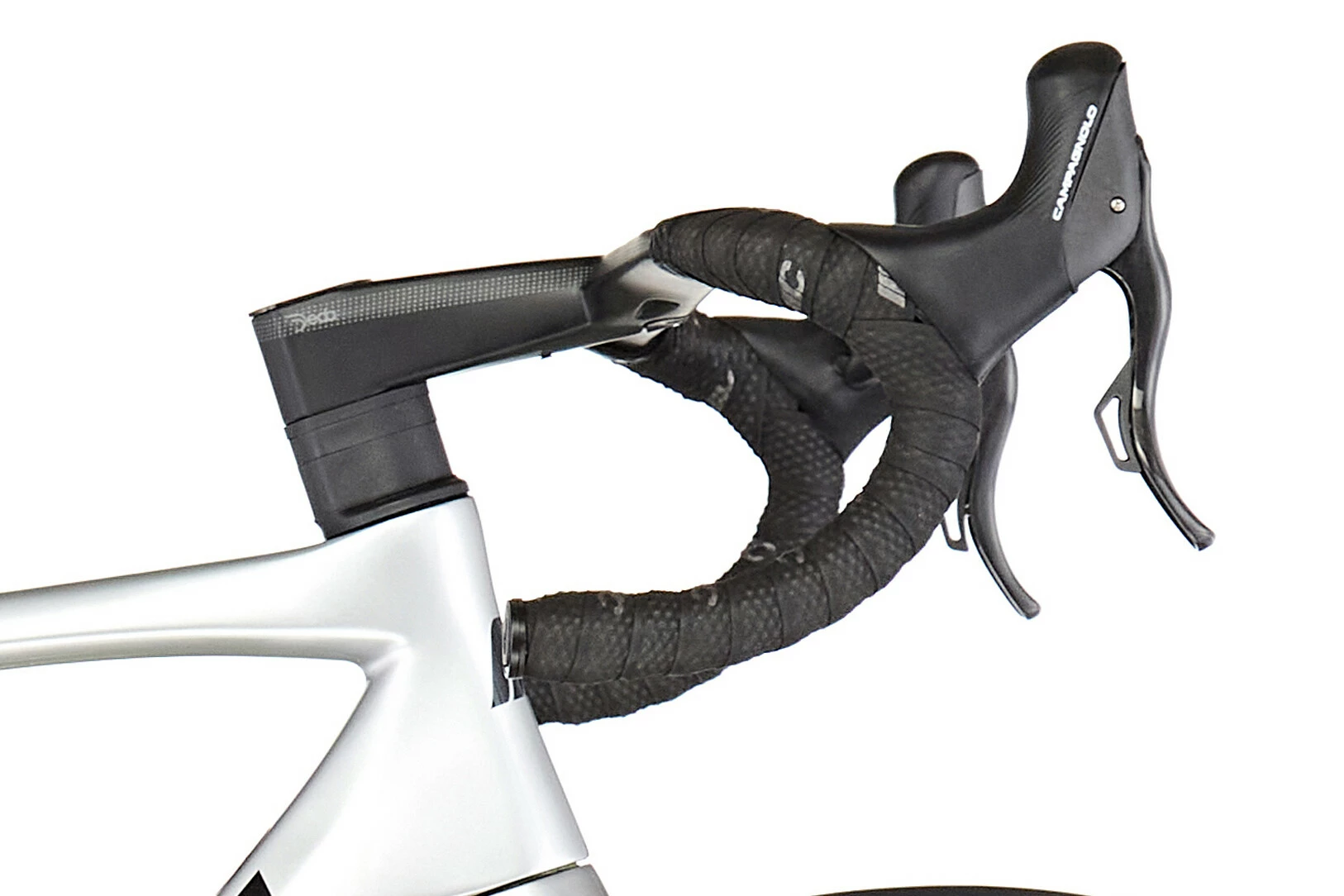 Carbonstyret fra Deda og de lette, højtydende Campagnolo WTO DB carbonhjul med 33 millimeter høje fælge er sammen med de hurtige 25 millimeter Vittoria Corsa dæk med til at presse den racerorienterede cykel ned på en samlet vægt på langt under 7 kg.