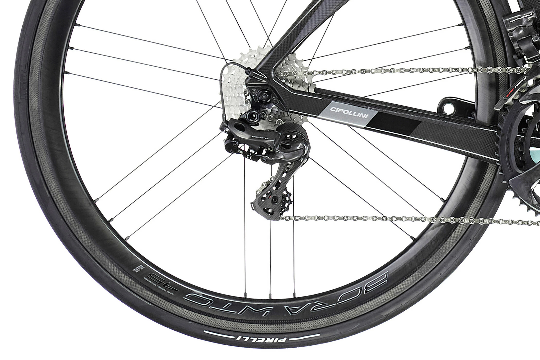 Som det altid er tilfældet hos Cipollini, er rammegeometrierne tilpasset således, at raceren opfører sig identisk ved alle rammestørrelser, hvad angår håndtering og ydeevne.