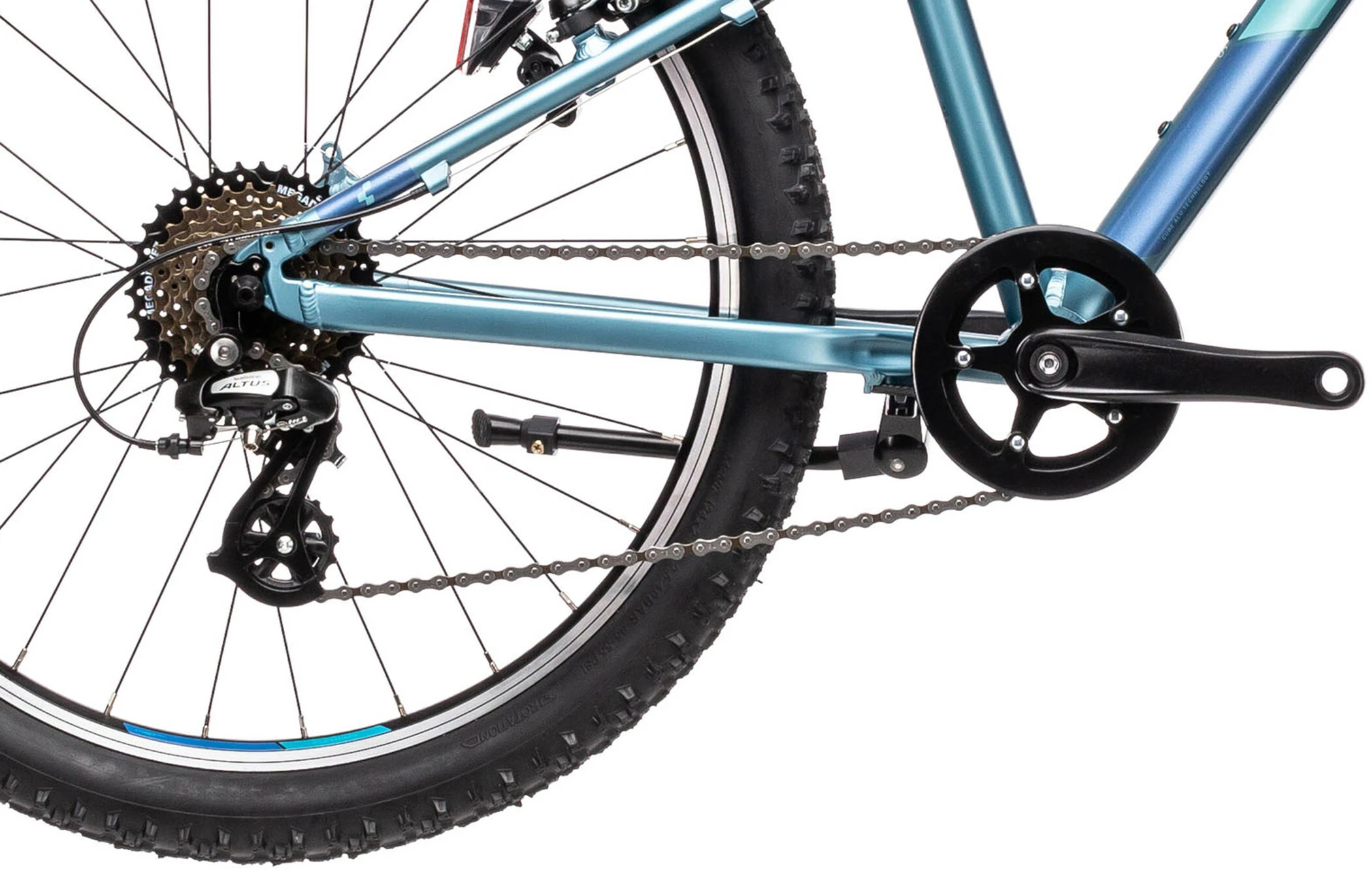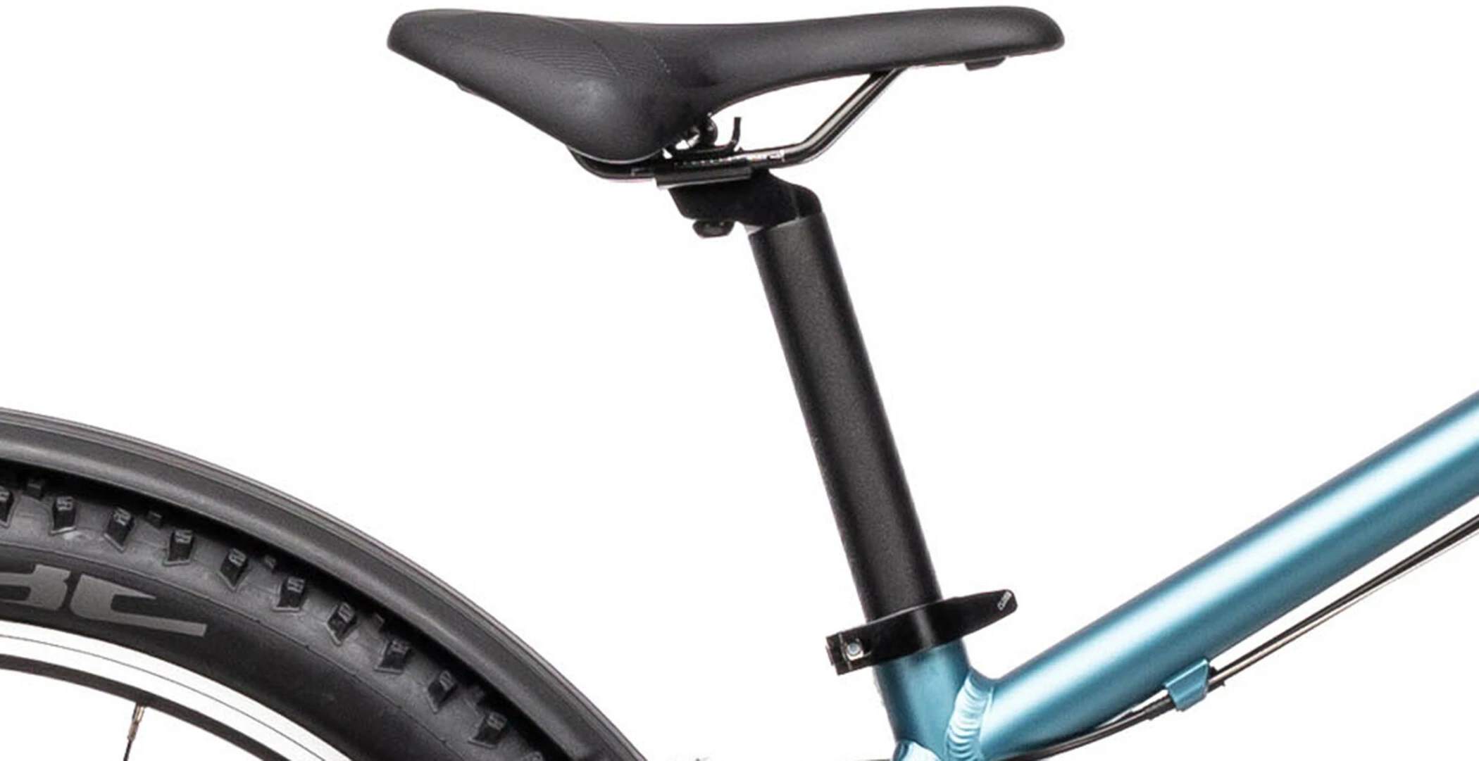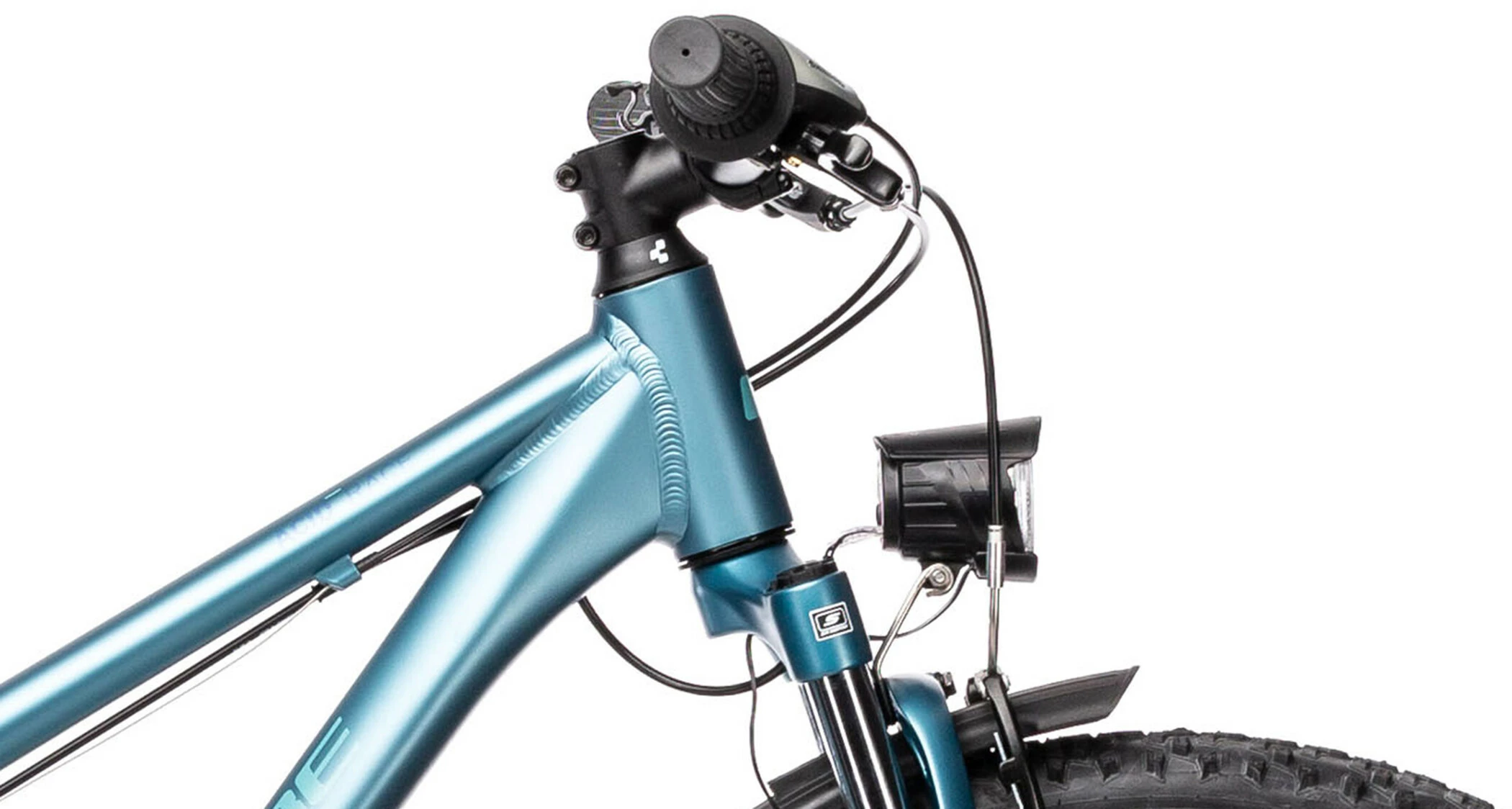 CUBE mener ikke, at du skal være nødt til at ændre en cykel, du lige har købt til dit barn, for at gøre den mere sikker på vejen. Derfor har de med Acid 240 Allroad inkluderet alt det tilbehør, du kan få brug for. Der er stænkskærme til vådt vejr, LED-lys, så dit barn kan se og blive set, og en bremsemodulator foran, der hjælper med at forhindre ulykker, der sker over styret. Den affjedrede forgaffel giver mere komfort og kontrol på ujævne overflader. En 7-trins gearkasse har nemme gearskift og et bredt gearområde. Og der er endda et fodstativ – du behøver hverken træ, parkbænk eller væg.