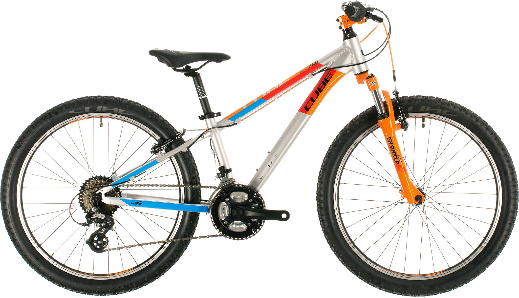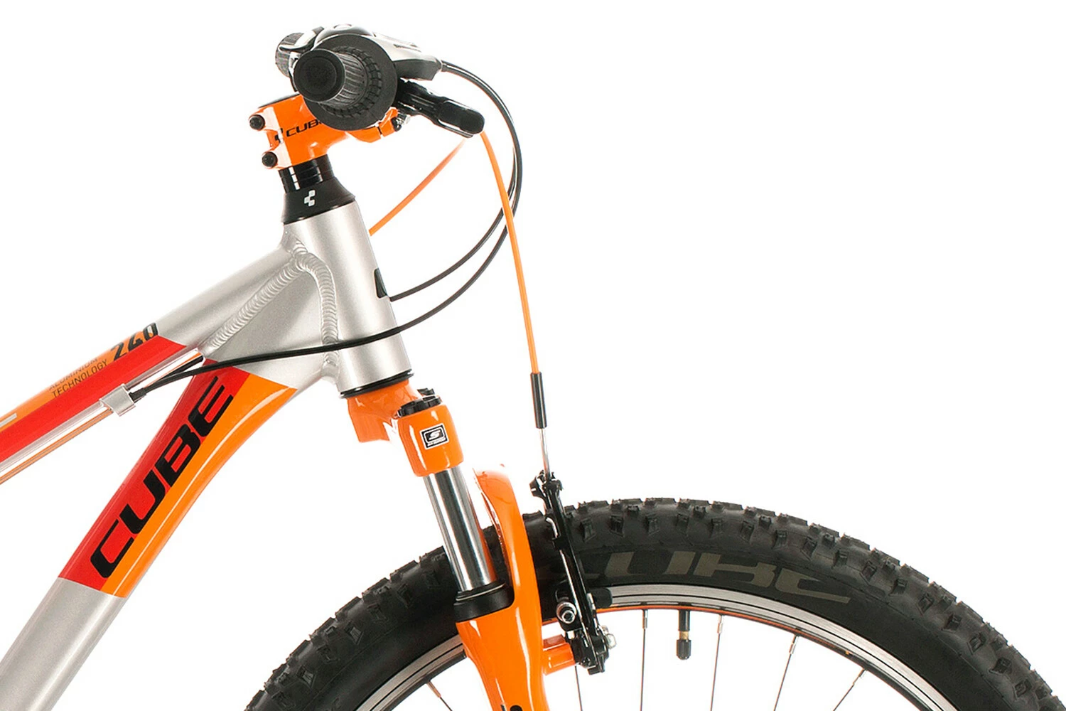 Acid 240’s stel er bygget af de samme varmebehandlede 6061 aluminiumsrør som deres cykler til voksne og er lige så robust som en mountainbike i fuld størrelse, men med den rette vægt og de rette proportioner til et barn. Der er en flaskeholder til forfriskning midt på turen og også monteringer til rack. Styringen er designet til at være både sjov og tillidsvækkende. Og fordi Cube ved, at ulykker kan ske, har de gjort det nemt at udskifte gearophænget, så et slag eller et styrt ikke behøver at resultere i en dyr reparation.