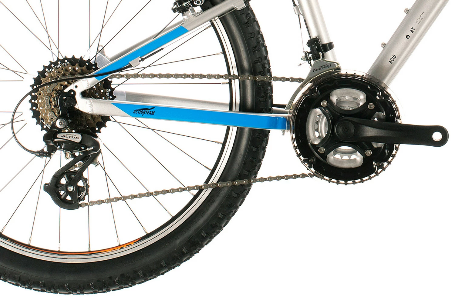 Acid 240 er det ideelle valg for voksende ryttere, der ønsker at følge med deres venner og forældre. Suntour affjedringsgaflen forbedrer komforten og kontrollen på ujævne overflader, mens Shimano 7-speed gear gør hver eneste bakke inden for rækkevidde. V-bremserne er kraftige og nemme at betjene takket være håndtag, der er specielt designet til små hænder, og en kraftmodulator foran. Og en udskiftelig gearophæng betyder, at et uheld ikke behøver at resultere i en dyr reparation. Gå. Udforsk.