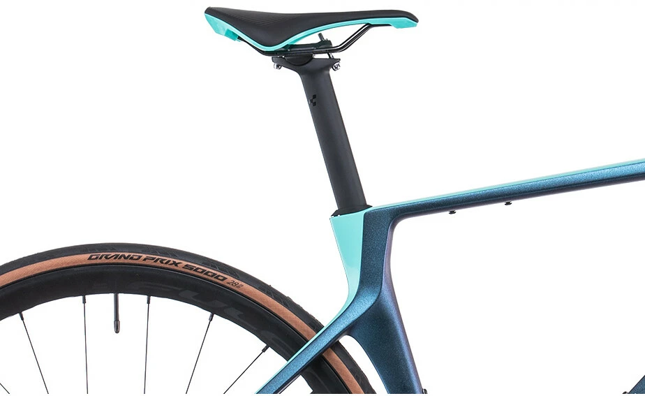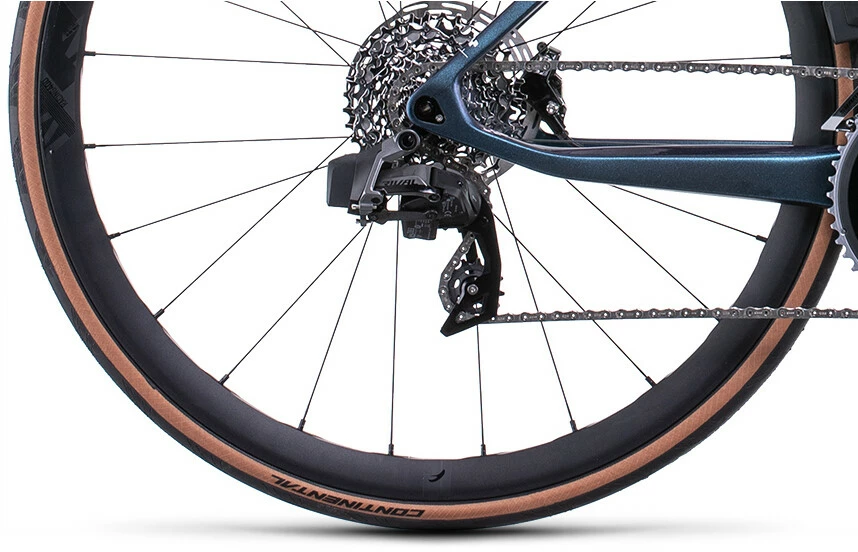 For the brand-new Axial WC C:62 SL Cube took inspiration from their sleek, high-end road race and time trial bikes to make a frame that’s as slippery moving through the air as it is good to look at. But a great all-rounder is light and comfortable too, which is why Cube finessed the carbon layup and used slender stays and careful tube profiling. Semi-integrated cable routing reduces both turbulence and maintenance. And they included a storage box, so you can take food, tools or an extra layer to keep you riding for longer.