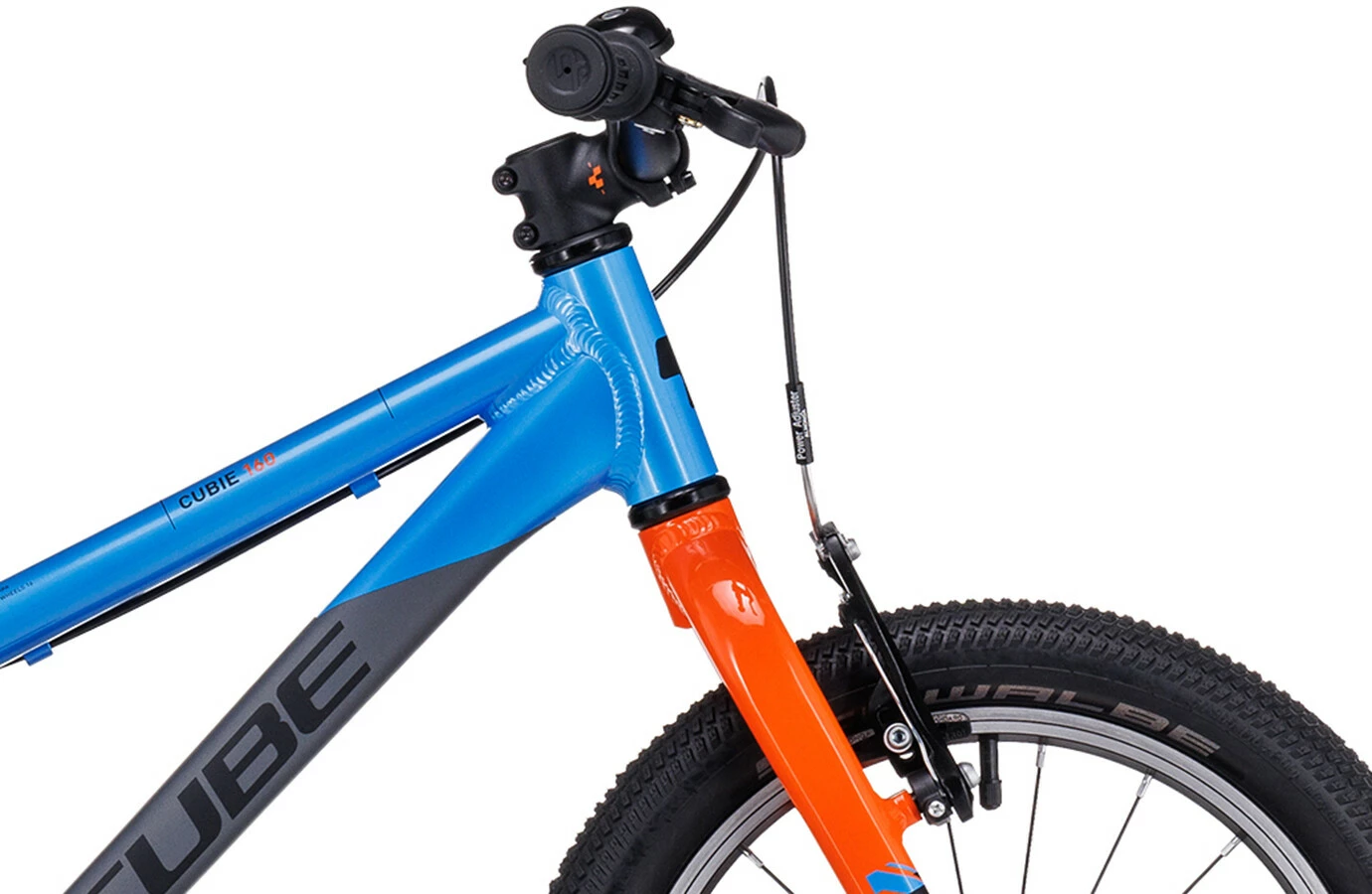 The Cubie 160 is designed to be fun and responsive, but with the safety of stable, predictable steering. The lightweight aluminium 6061 frame features rounded edges and corners to help minimise the risk of injury, but they’ve ensured that it’s more than tough enough to stand up to enthusiastic use. The lightweight alloy fork helps keep the overall weight down and contributes to the bike’s lively but safe handling. And, of course, there’s a choice of paint finishes to capture every child’s imagination.