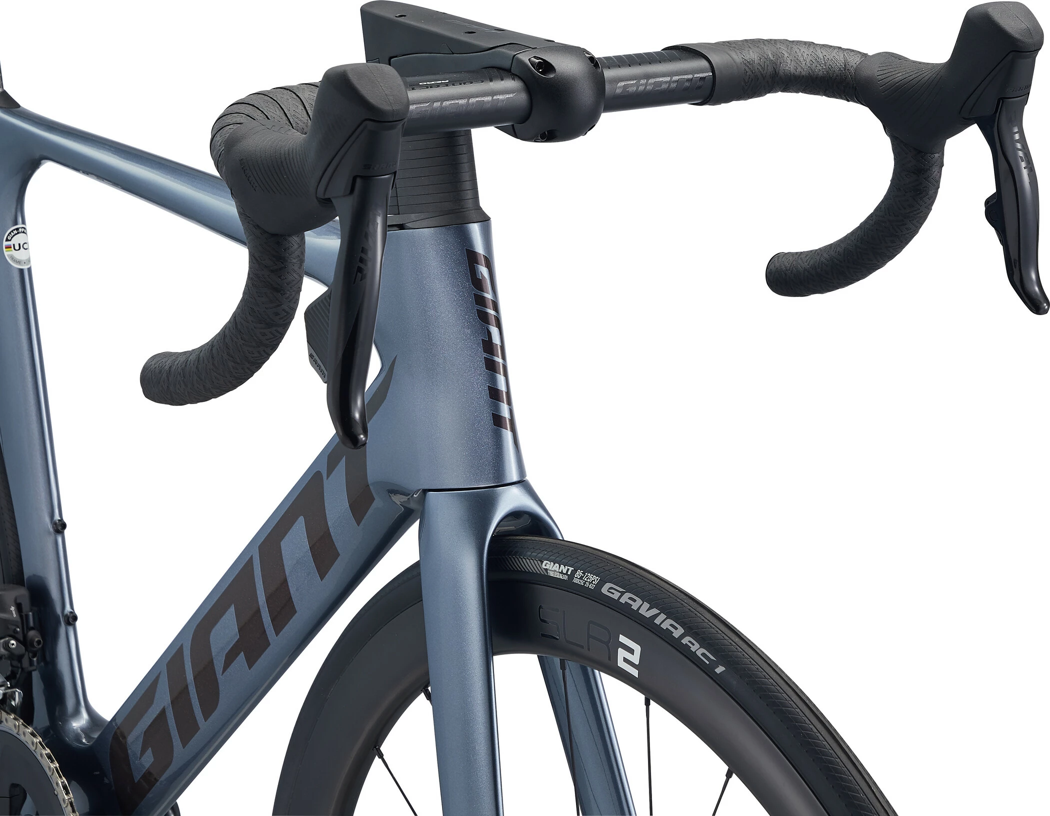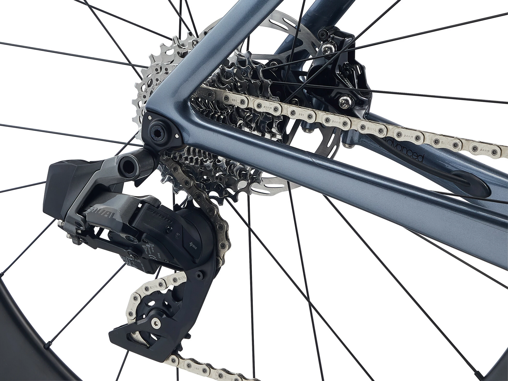 I angreb, ved at sprinte eller køre i høj fart i et hjørne. Effektivitet møder total kontrol i denne strømlinede komposit aero racercykel.