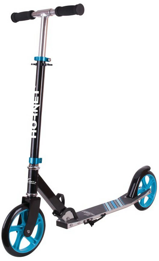 Kør hurtigt gennem byen med Hudora Hornet City Scooter på store 205 mm hjul. Takket være de enkle foldnings- og justeringsmekanismer er den nem at betjene og er derfor det ideelle køretøj til at komme fra A til B på ingen tid.