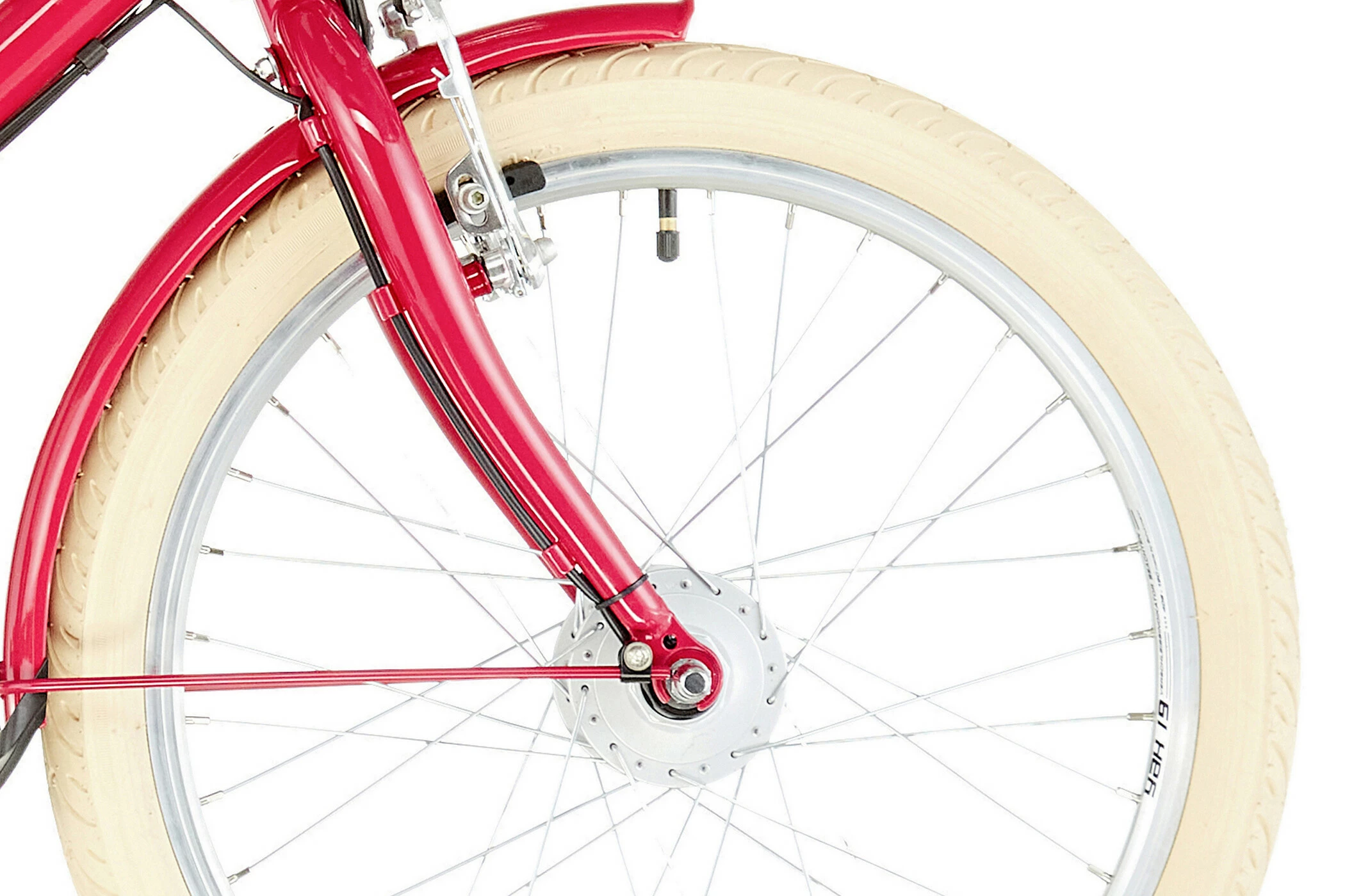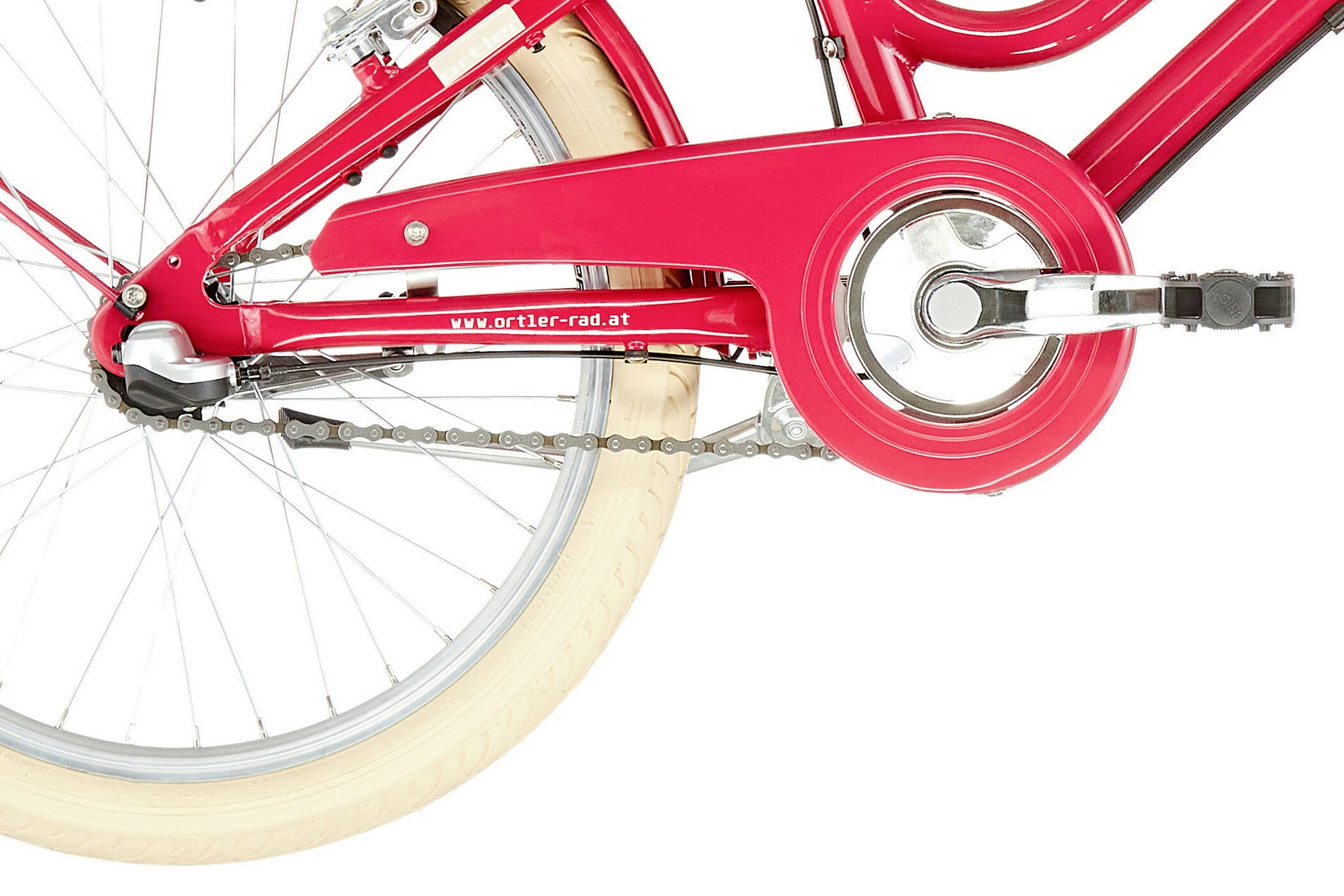 Ortler Bricktown 20- og 24-cyklen er specielt designet til unge cyklister og har en klassisk Porteur-stil. Med en buet stålramme, 3-trins navgear og en robust standardkurv i styret er denne cykel både praktisk og stilfuld. Cyklen leveres komplet med kædebeskytter og matchende skærme i et børnevenligt design.