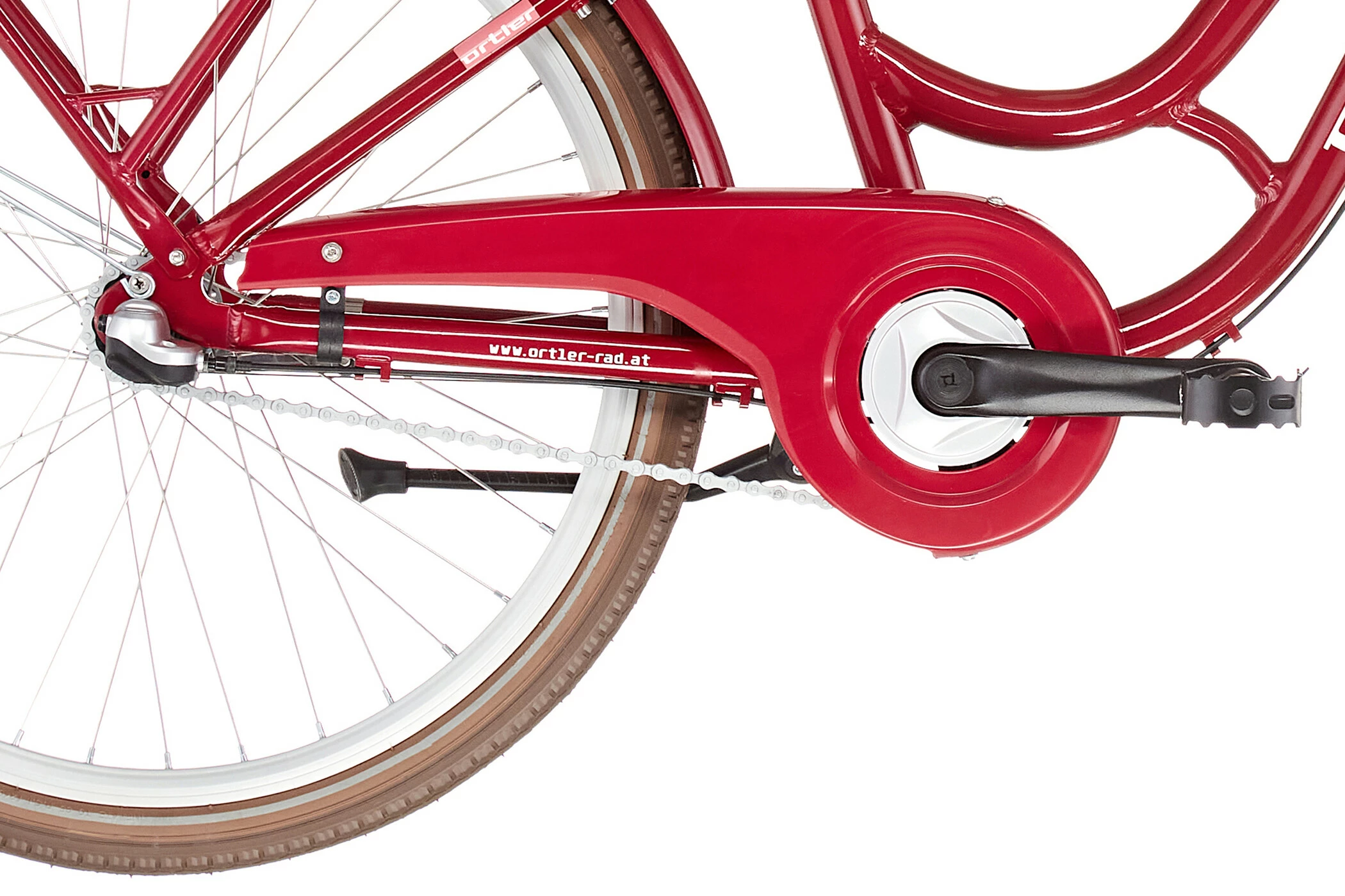 The Ortler Copenhagen is fully equipped and roadworthy. The bike has a bell and reflectors on the pedals and tyres. If it’s dark, it’s best to bring clip-on lights too, as these are not included with the bicycle. Protective covers protect against wetness and the centre stand means you don’t have to lean the bike against anything, for example when stopping at an ice cream parlour. All things considered, this Ortler children’s bike is in no way inferior to an adult’s bike. Shimano’s low-maintenance Nexus three-speed hub gears also make light work of the odd hill.