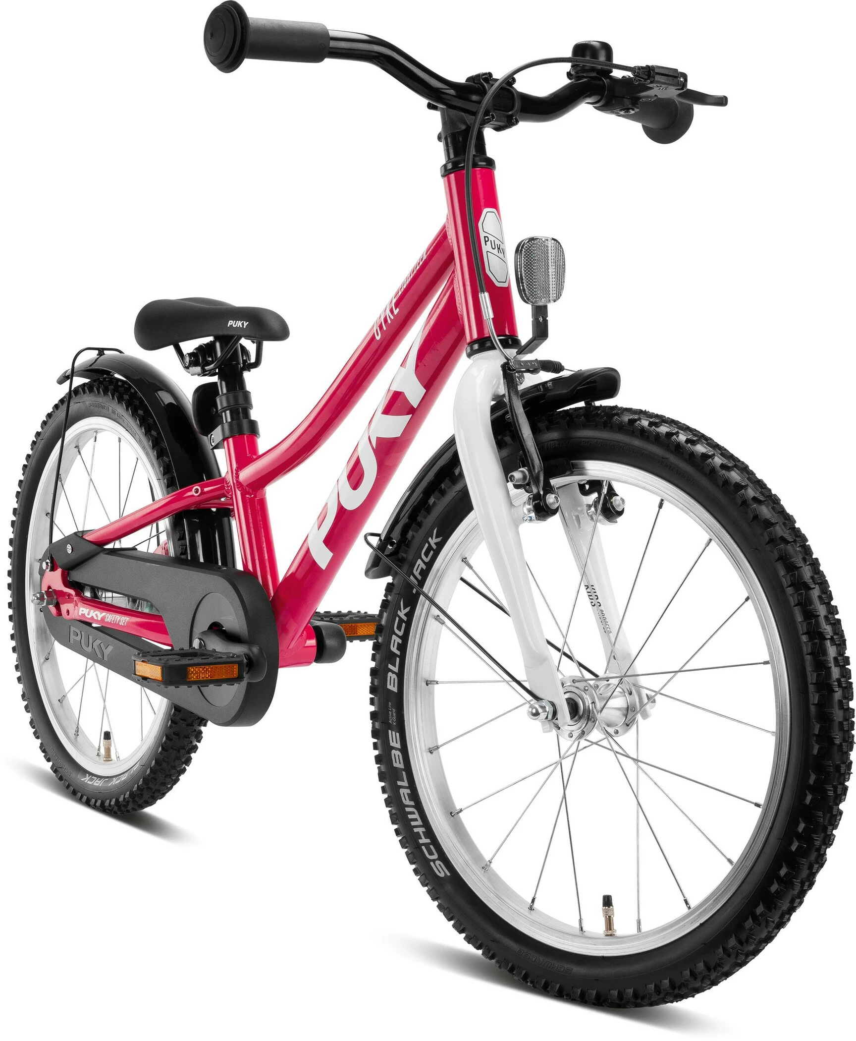 The PUKY CYKE 18-1 stands for sporty design, child-friendly geometry and lightweight components that make cycling an experience for children. PUKY CYKE 18-1 is standard equipped with the PUKY SAFETY SET and has all essential components for daily use on board. For example fenders, a bell and a side stand are already included in the scope of delivery. The PUKY CYKE 18-1 has a back pedal as well as a standard V-brake brake system that brings children to a safe stop. The low overhang height guarantees quick and effortless ascent and descent at traffic lights or crossings. Compared to its predecessor PUKY ZLX 18, the CYKE 18-1 has a weight saving of 1000 grams and weighs only 7.9 kg. The ratio between the weight of the bike and that of the child is therefore optimally balanced.