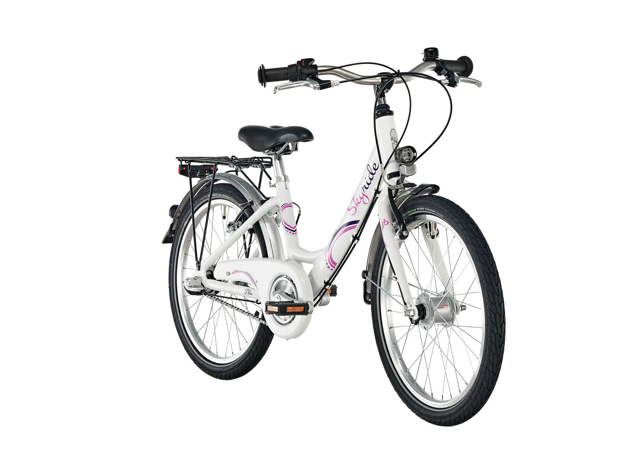 PUKY SKYRIDE 20-3 ALU er den første “voksne” cykel til piger. PUKY SKYRIDE 20-3 ALU er udstyret til alt, hvad enten du er på vej til skole, på søndagsudflugter eller leger med venner. Udstyret med en glidende Shimano Nexus 3-speed gearkasse, et LED-belysningssystem med parkeringslysfunktion og en pålidelig Shimano-navdynamo, efterlader denne ungdomscykel ikke noget ønskeligt med hensyn til funktion. Den lette og meget robuste aluminiumsramme i fashionabelt design er en rigtig eyecatcher. Typisk for PUKY er de mange særlige sikkerhedsfunktioner som kantbeskyttelsen på skærmene, sikkerhedshåndtagene og sikkerhedsklokken, som ikke kan åbnes og dermed ikke kan frigøre skarpe kanter.
