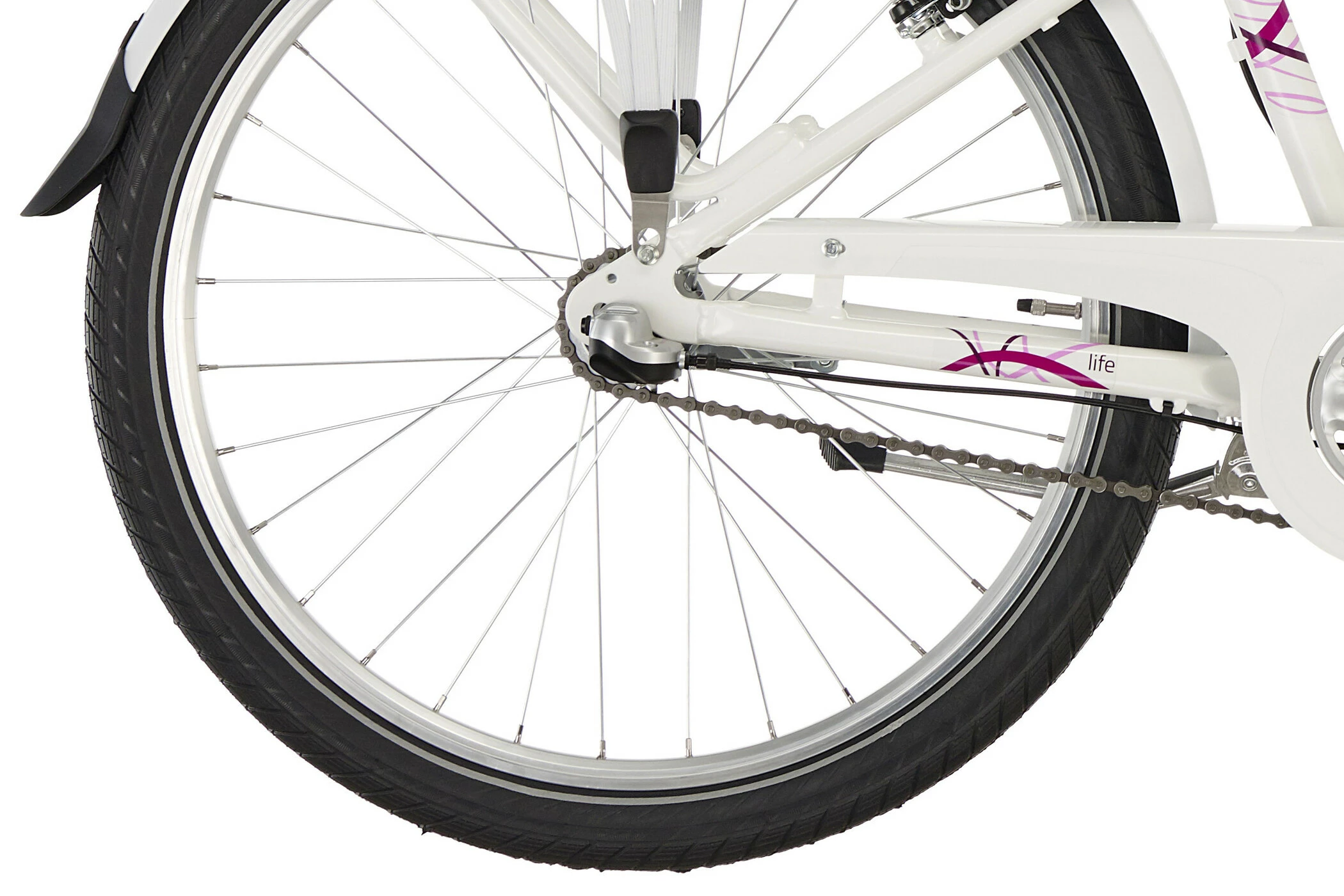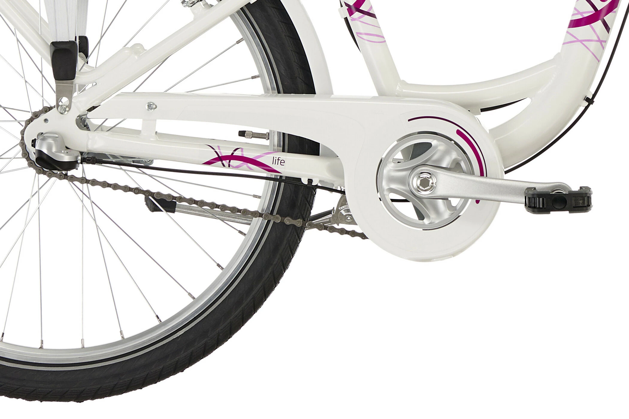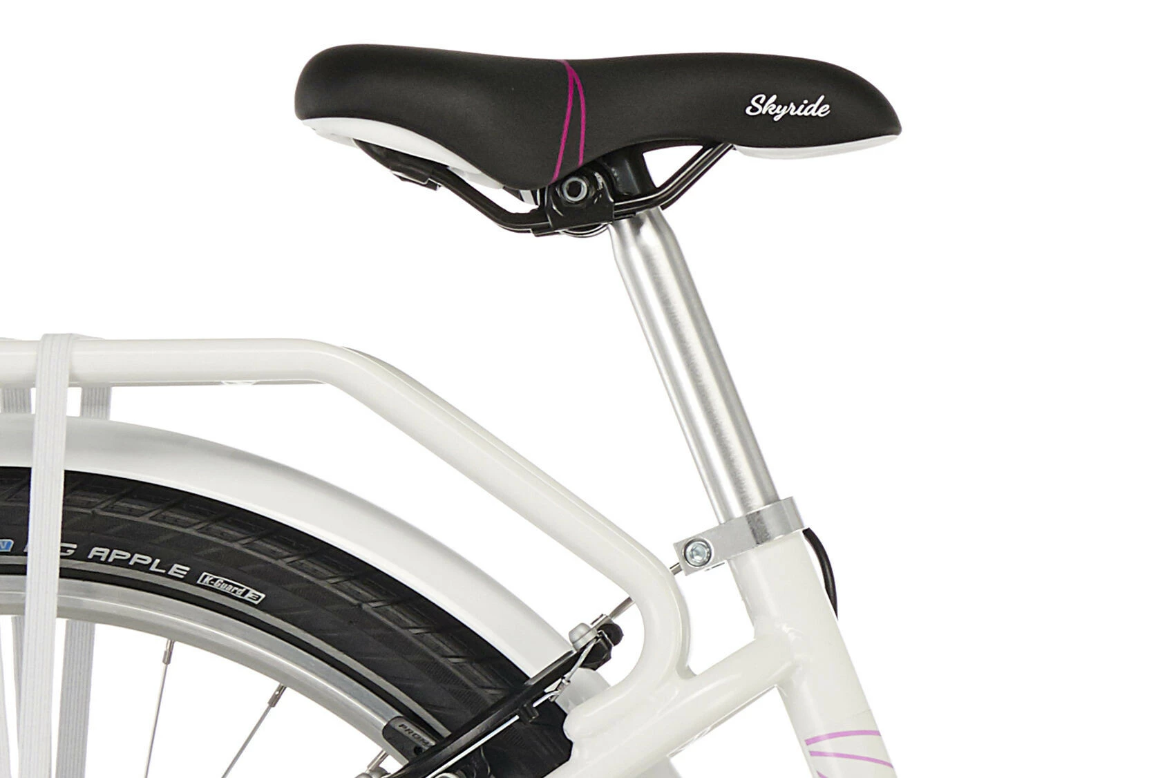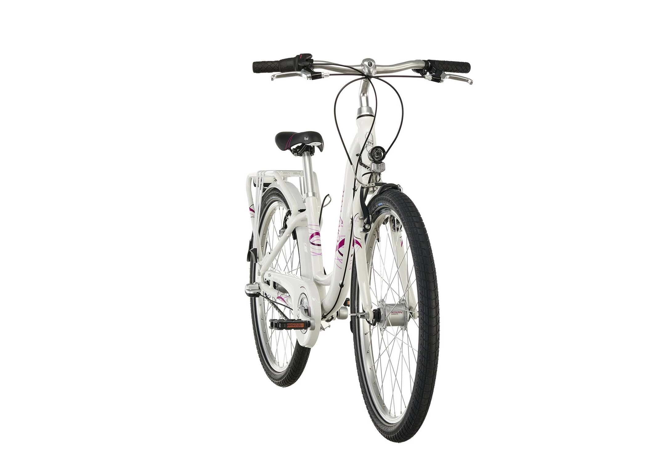 PUKY SKYRIDE 24-3 ALU skinner i tre spændende farver hvid, berry og i Classic Line himmelblå / beige, hvilket gør alle piger varme om hjertet. Men ikke kun designet er overbevisende. Det er også de mange gennemtænkte tekniske detaljer, der gør denne cykel til en ægte PUKY. Aluminiumbagagebærer med integreret racktime kobling, LED-forlygten med automatisk on / off, de anodiserede aluminiums aero fælge eller Schwalbe Big Apple dæk af høj kvalitet. Funktionenerne på denne cykel er på ingen måde begrænset af det flotte ydre.