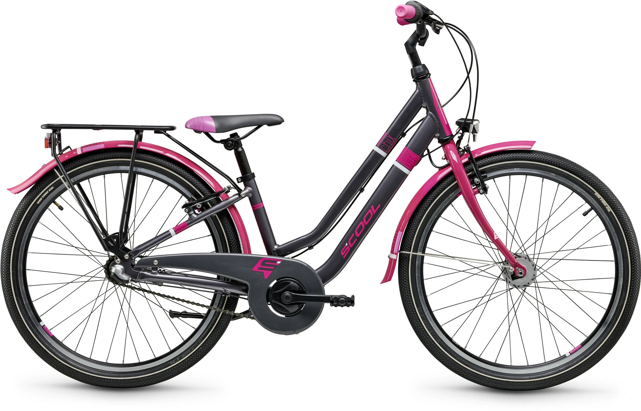 Med chiX twin’s cool og farverige design er du ikke kun stilfuld på vejen, men også godt rustet til trafikken. For at du ikke bliver overset, selv i skumringen og i mørke, er der monteret en Shimano navdynamo, som får belysningssystemet til at fungere. Kredsløbets funktion er i ordets egentlige forstand en leg for børn ved hjælp af et twistgreb. For at sikre en sikker bremsning anvendes kraftige fælgbremser. Sikkerhedsreflekser bagtil og foran fuldender beskyttelsen.