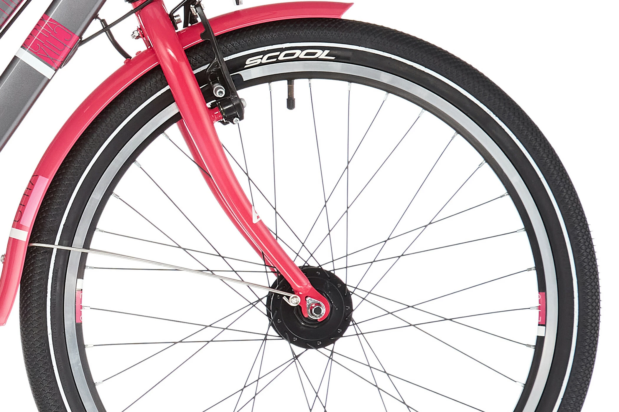 Med chiX twin’s cool og farverige design er du ikke kun stilfuld på vejen, men også godt forberedt på trafikken. For at sikre, at du ikke bliver overset i tusmørket og mørket, er der monteret en Shimano navdynamo, som får lyset til at fungere. Det er en leg for børn at betjene gearene i ordets egentlige forstand med et drejegreb. Der anvendes kraftige fælgbremser til sikker opbremsning. Sikkerhedsreflekser foran og bagpå fuldender beskyttelsen.