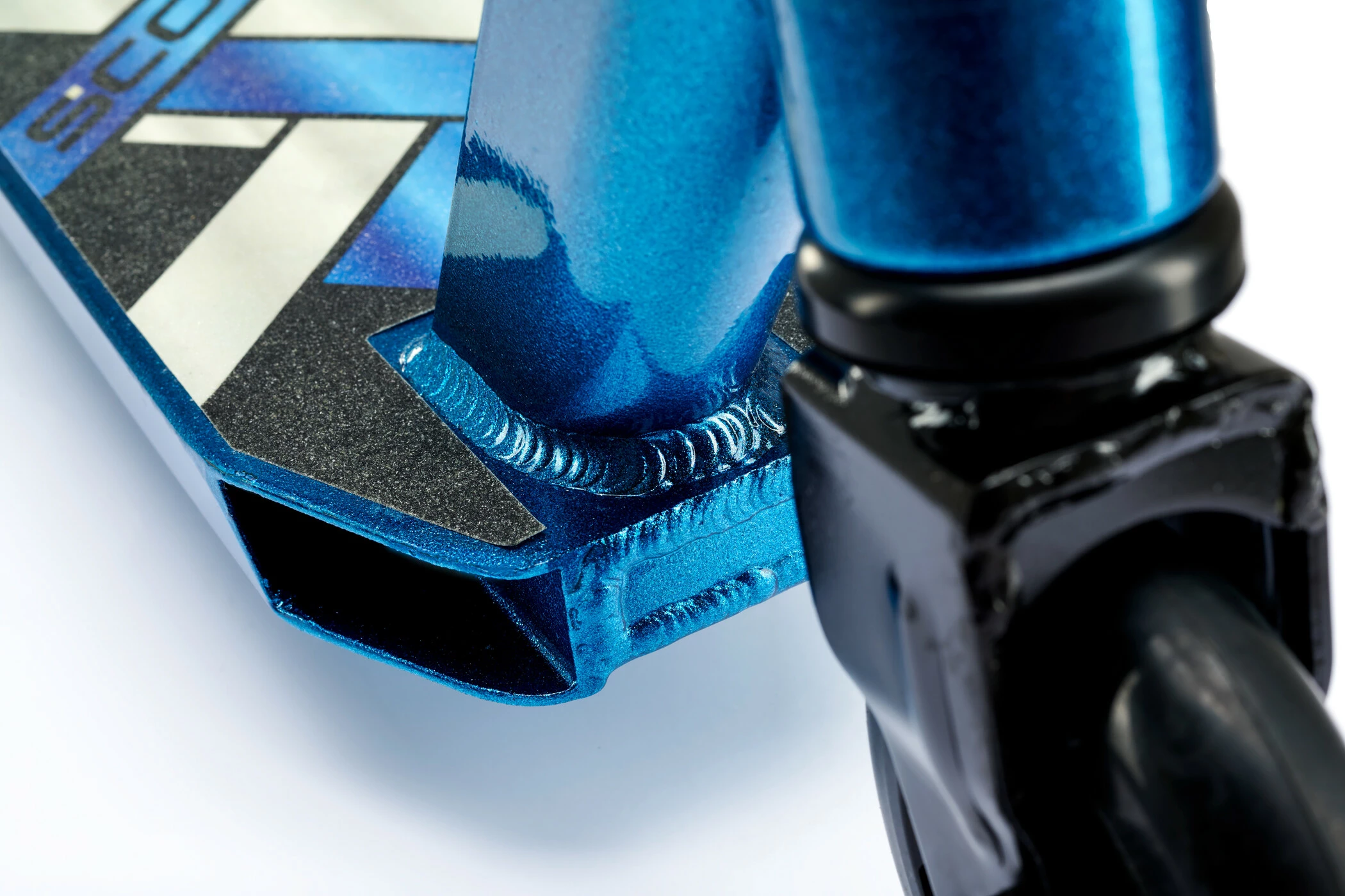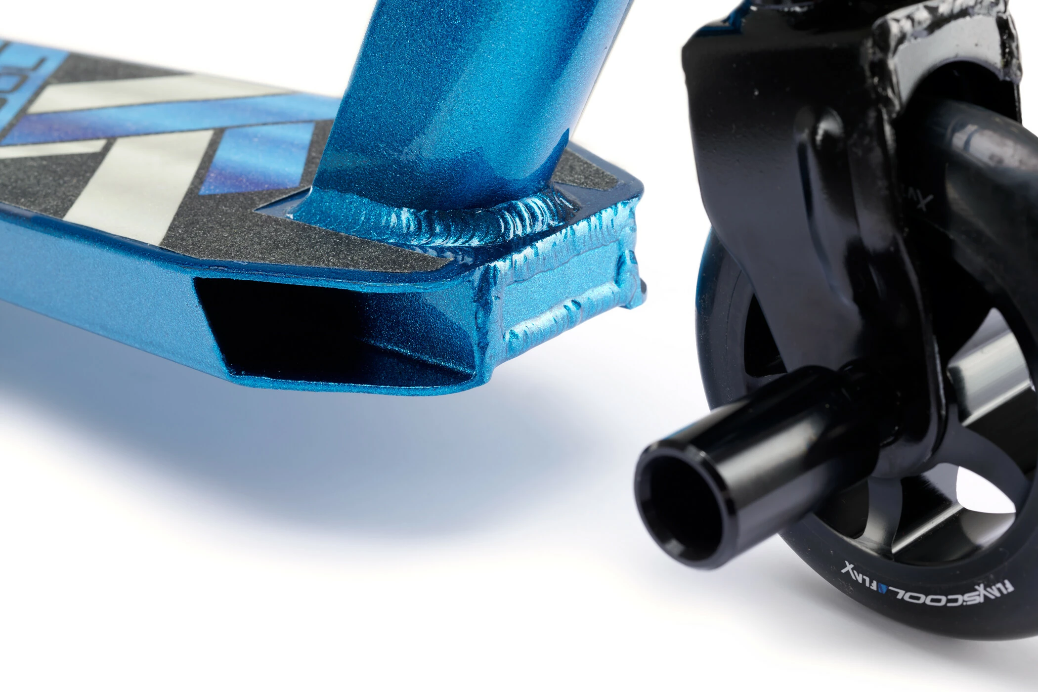 FlaX 8.6 stunt-scooteren i funklende Flash Blue eller Flash Gold er den mere robuste version af en scooter. Optimalt egnet til tricks og ture på rampen.
