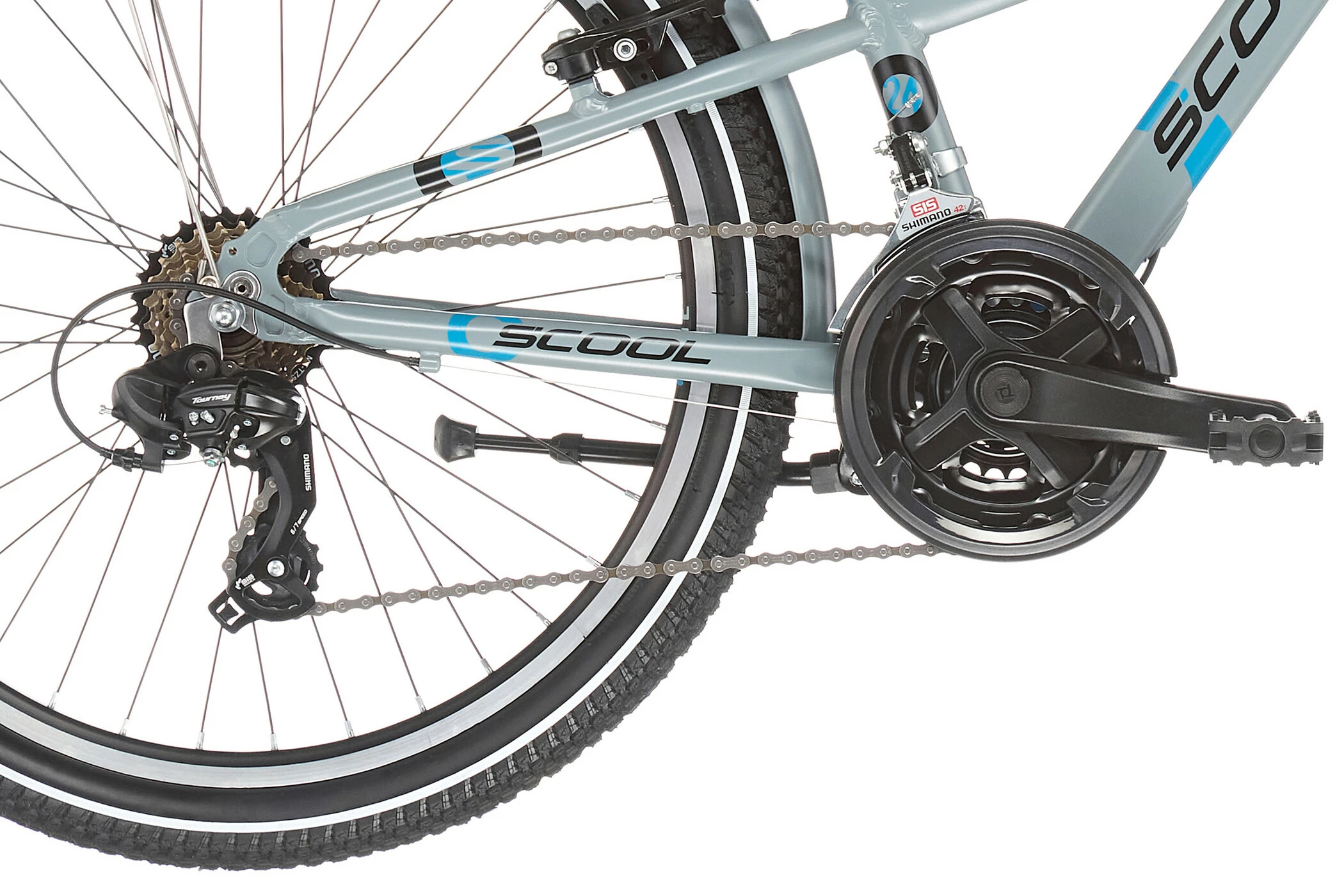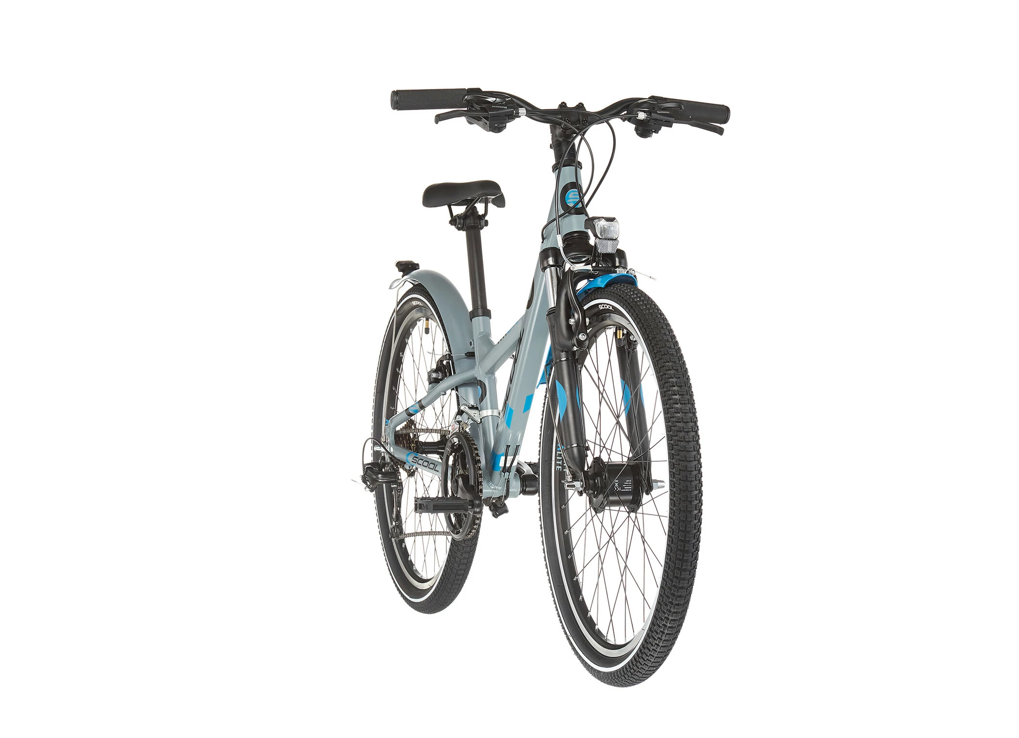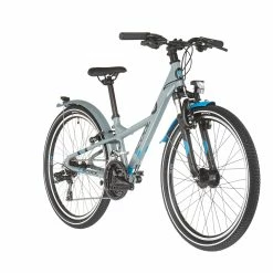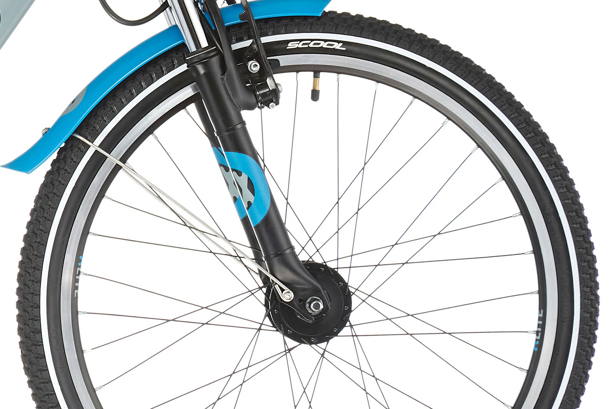 Med XXlite 24 21-S fra s’cool kan sporty børn på over 135 cm højde sikkert komme i skole på og uden for vejene under forskellige lys- og vejrforhold. 24 i navnet står for rammestørrelsen og 21 for antallet af gear i derailleur-systemet. En robust aluminiumsramme og en affjedret forgaffel sikrer langvarig køreglæde. Grippy fælgbremser på for- og baghjulet fungerer pålideligt, når det er nødvendigt. De let profilerede 24-tommers dæk giver tilstrækkelig trækkraft på forskellige overflader. Denne model har også fuldt færdselsklar tilbehør med for- og baglygter, alle nødvendige reflekser, stænkskærme og en klokke.