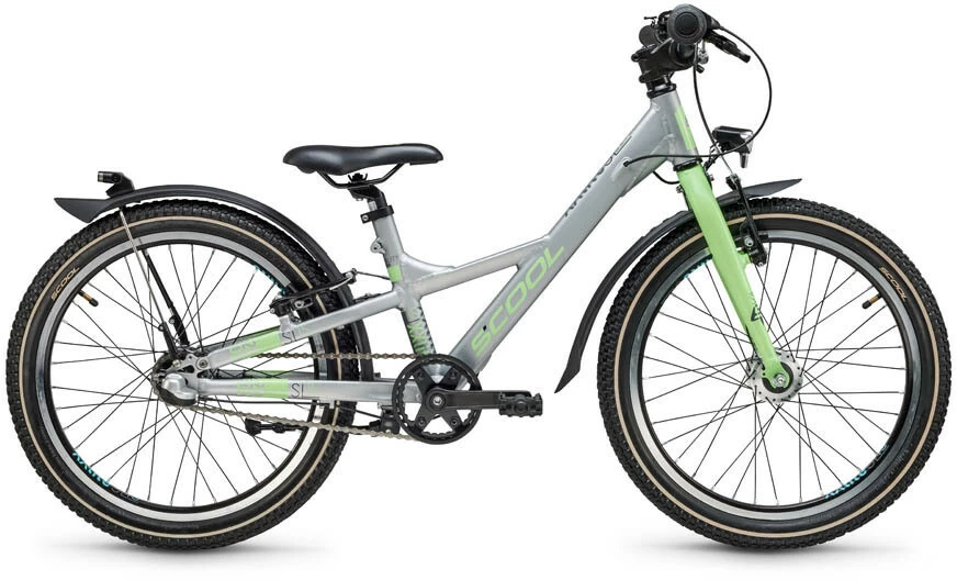 En letvægts skolecykel med fuldt udstyr og gennemtænkte komponenter. Derfor har vi valgt aluminiumskomponenter til forgaffel, forgaffel, styr og krank. Panasonic-navedynamoen og Nexus-freewaynavet med 3 eller 7 gear sparer yderligere vægt. En særlig usædvanlig detalje er LED-baglygten, som er monteret på stænklappen og dermed bliver et lille, men fint blikfang.