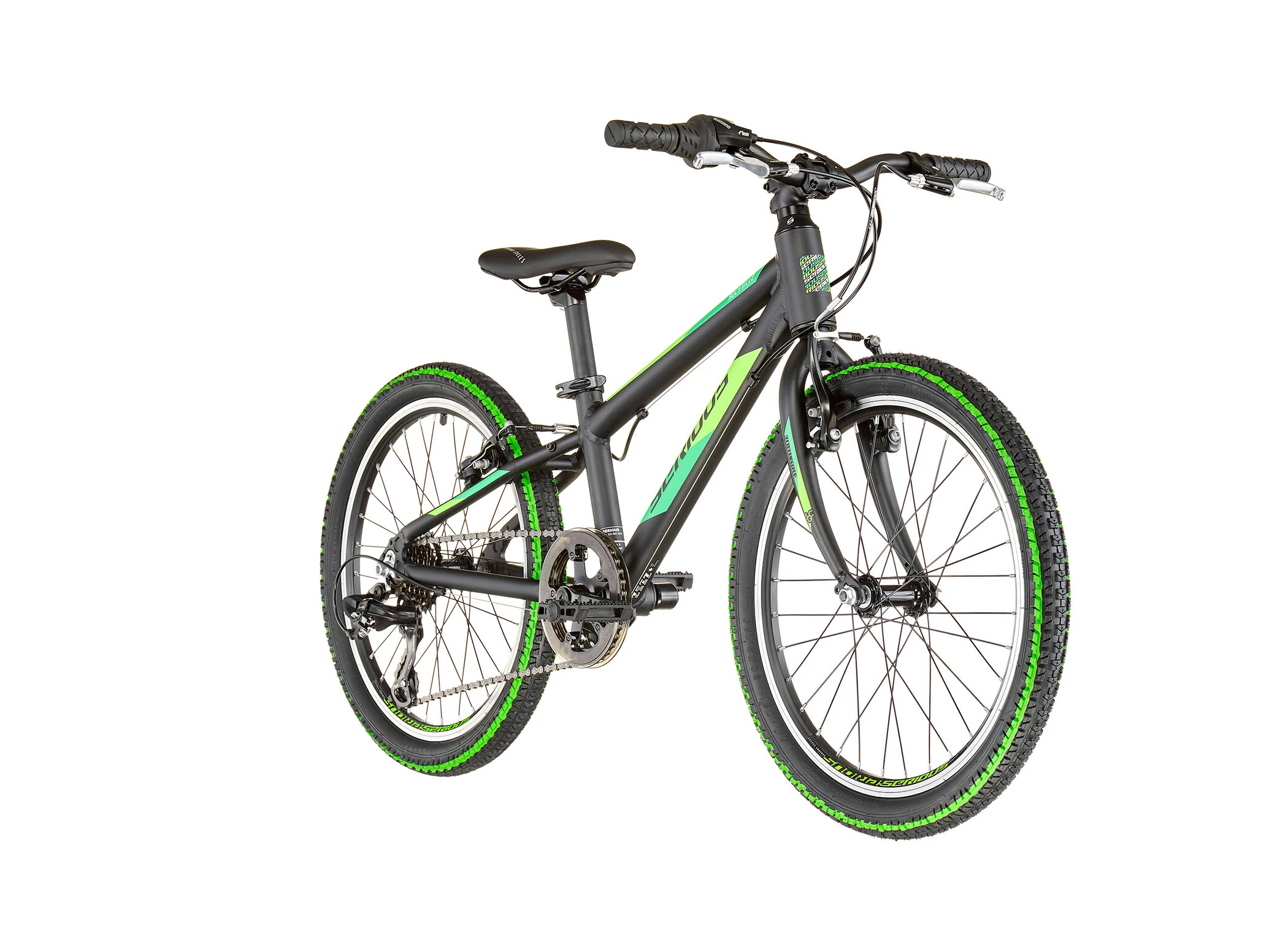The sporty Rockville is a children’s mountain bike in a class of its own. The light aluminium frame has not only a robust equipment, but also a very child-friendly geometry due to the strongly sloping top tube which allows a safe handling of the Rockville. The Shimano Tourney 7-speed derailleur offers sufficient gearing for the first longer rides and the Shimano twist shifter makes shifting clean and fast.