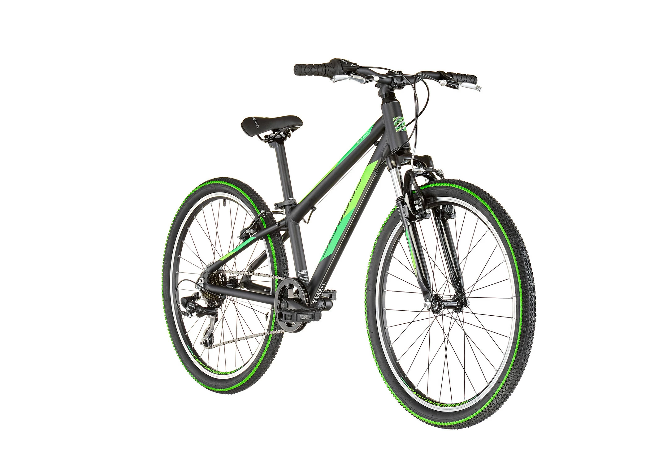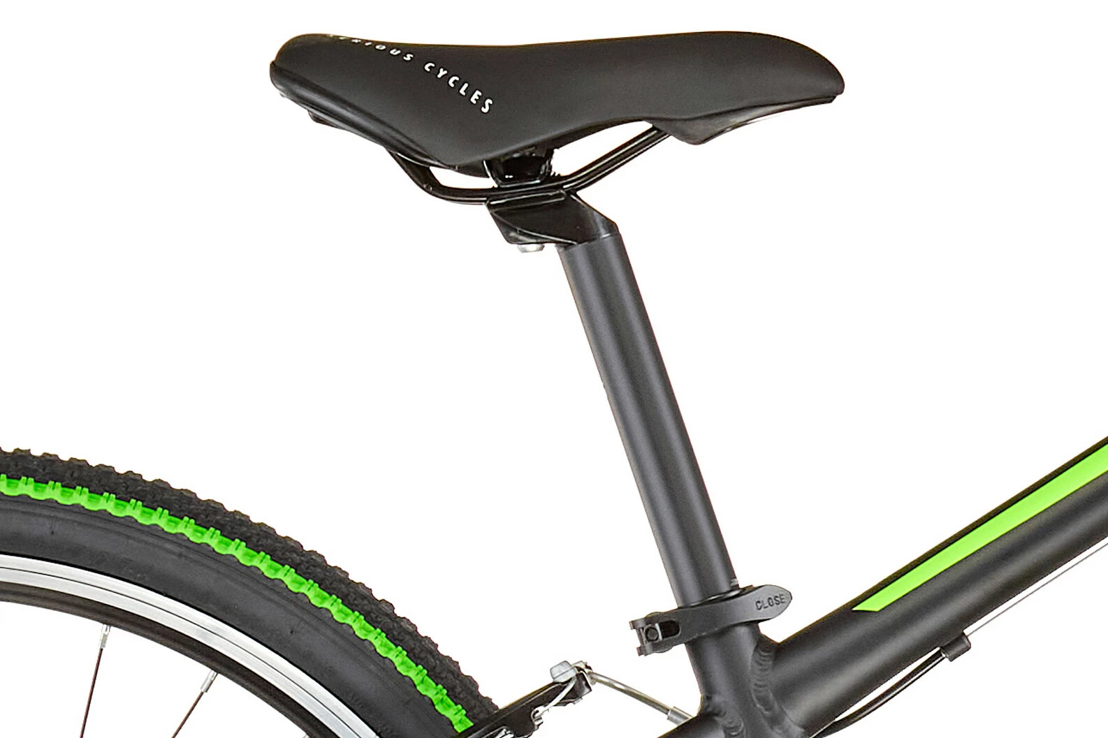 The light aluminium frame of the Serious Rockville features robust components and a very child-friendly geometry. This model’s strongly sloping top tube makes for safe handling.