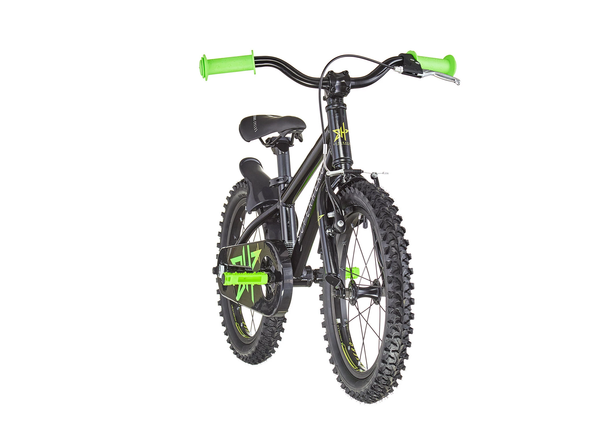 Superhero har stilfulde greb, et Rizer bar-styr, stilfulde motocross-mudderbeskyttere og quick release-klemmer på sadelpinden – ligesom de voksne modeller.Den er udstyret med en letløbende V-bremse på forhjulet og en gennemprøvet coasterbremse på baghjulet, der holder de unge ildsjæle i skak med deres fart. Denne model er baseret på et godt gammelt enkelt gear med en kædebeskyttelse med fuld dækning.Så den nyeste generation af cykelhelte kan klare enhver situation og holde buksebenene rene tilmed.