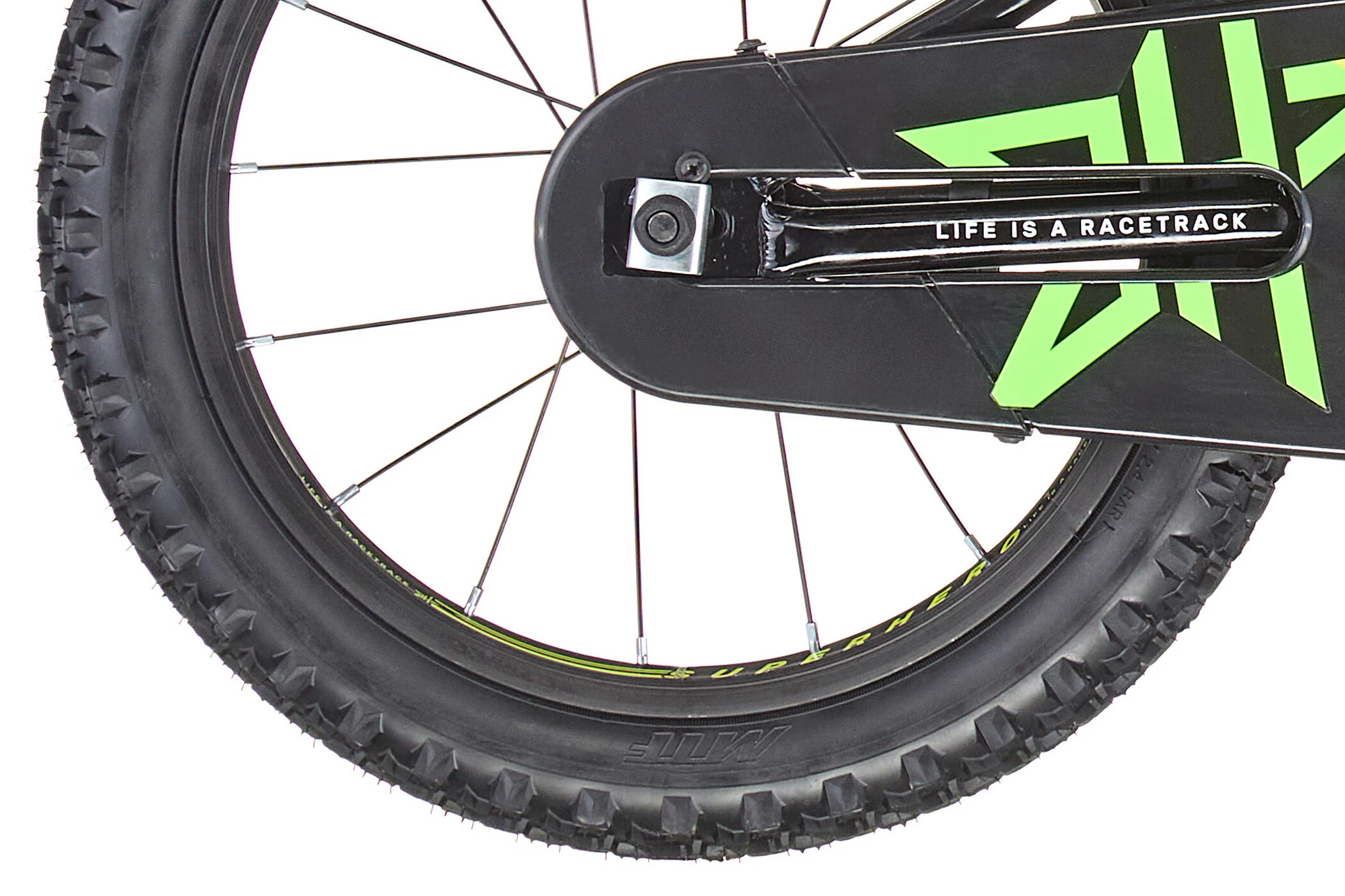 Superhero har stilfulde greb, et Rizer bar-styr, stilfulde motocross-mudderbeskyttere og quick release-klemmer på sadelpinden – ligesom de voksne modeller.Den er udstyret med en letløbende V-bremse på forhjulet og en gennemprøvet coasterbremse på baghjulet, der holder de unge ildsjæle i skak med deres fart. Denne model er baseret på et godt gammelt enkelt gear med en kædebeskyttelse med fuld dækning.Så den nyeste generation af cykelhelte kan klare enhver situation og holde buksebenene rene tilmed.