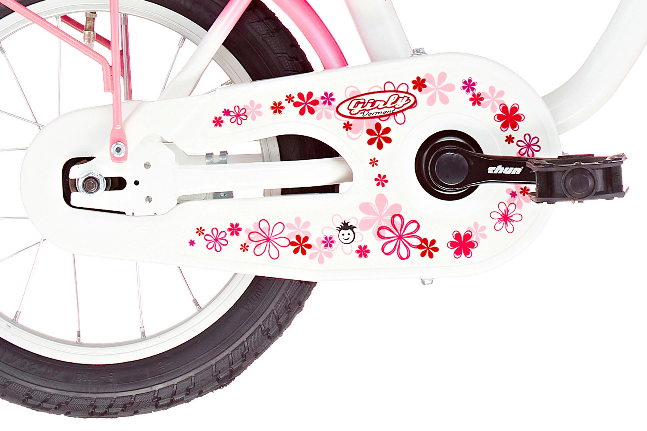 Pigecyklen fra Vermont er et ægte blikfang. En supersikker cykel, som gør hver eneste tur sjov. Den stilfulde børnecykel er ikke kun overbevisende i udseendet, men vigtigst af alt er Vermont Girly en kvalitetscykel med masser af nyttige funktioner. Ud over en ramme med lavt trin har Vermont Girly en stabil aluminiumsramme, en coasterbremse og forbremser med børnevenligt bremsegreb samt polstring på forgaflen. Alt dette er fuldendt med tilføjelsen af en smart kurv på forsiden.