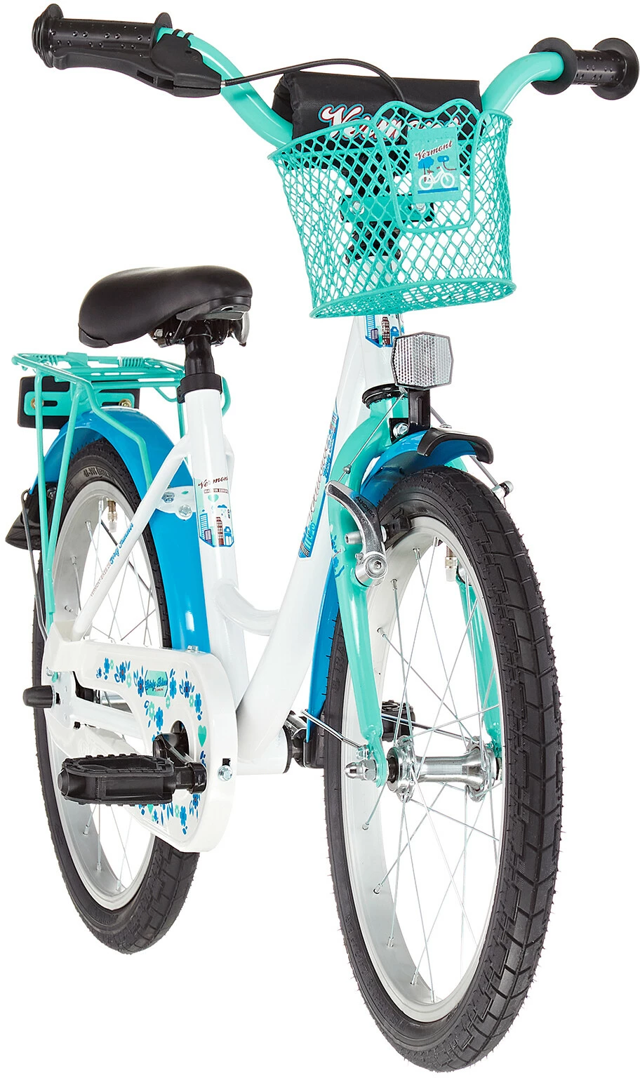 Børnecyklen imponerer ikke kun med sit dristige udseende, men frem for alt med sin kvalitet og sine nyttige detaljer. Ud over et stel med lav indstigning har Girly børnecyklen robuste aluminiumsfælge, bremser på baghjul og forhjul med et børnevenligt bremsegreb og en forhjulspude. Et andet højdepunkt er den smarte kurv på styret til alt det, som de små piger har brug for. Sikkerhedsfunktioner som reflekser på fronten, pedalerne og bagagebæreren, klokke, dobbeltboltede støttehjul og sikkerhedsgreb fuldender Vermont Girly.