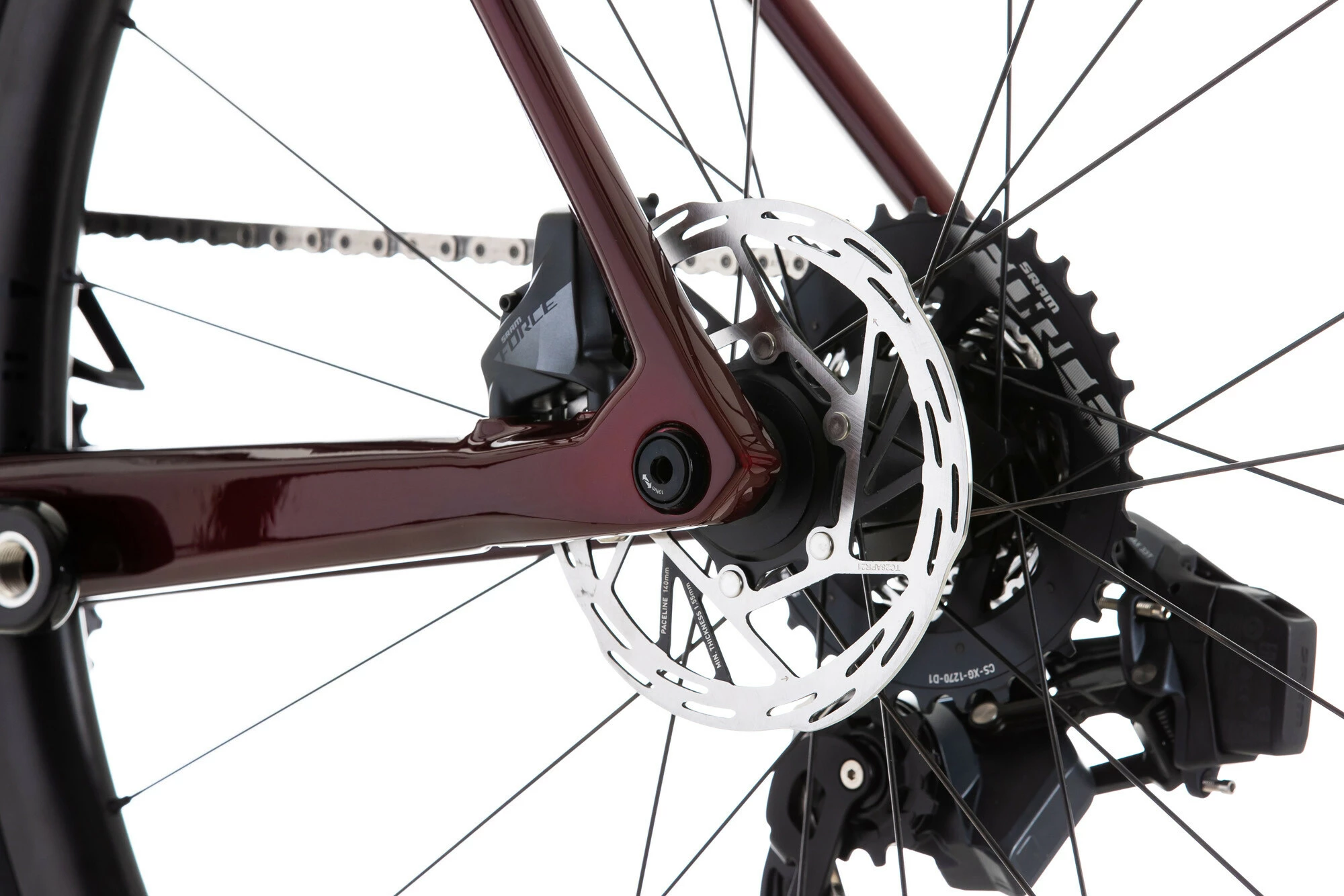 Geometrien er optimeret, så du får kontrol i sving, mens den også reagerer på accelerationsbølger eller stejlere ramper. Stivheden er konstrueret i rammen, hvor du har mest brug for den, så kostbar energi ikke går til spilde – noget vi alle har brug for på de lange, kuperede dage. Og den moderne rammeafstand giver også plads til et dæk med større volumen, hvilket udjævner de virkelige vejoverflader i den virkelige verden.
