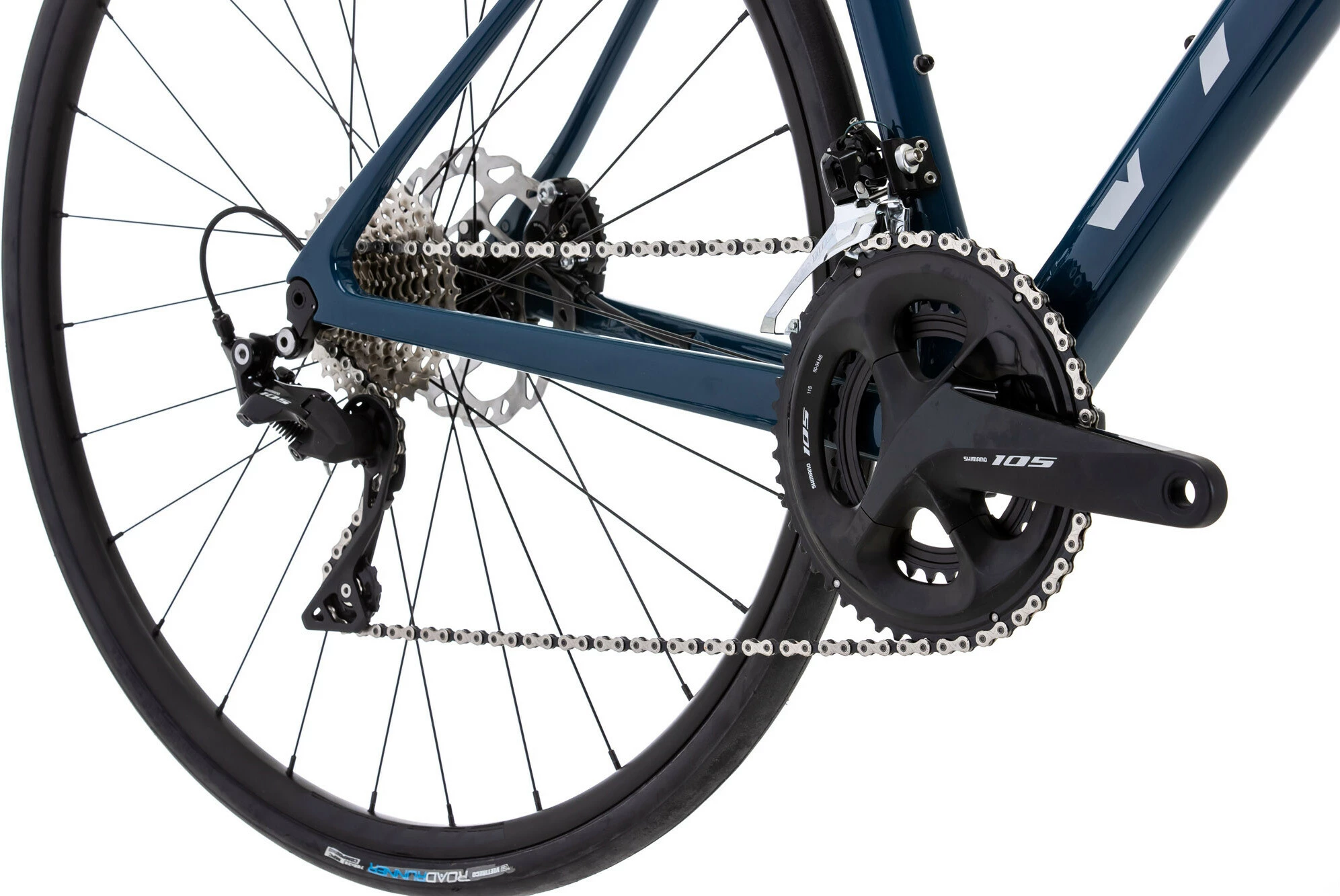 Vitus Zenium CR er en moderne og sporty racercykel i carbon. Zenium er en cykel, der nyder godt af indflydelsen fra de bedste Vitus-præstationscykler og med funktioner, der gør den til et skridt opad fra begynderniveauet, er Zenium den cykel, der vil give dig mulighed for at vokse som rytter. Zenium er fyldt med fantastiske funktioner. For det første er carbonrammen UCI-certificeret, så du kan med lidt træning køre Tour de France med den. Bolt-thru-aksler for og bag holder håndteringen forudsigelig og bidrager til den responsive fornemmelse og effektivitet, især når du er ude af sadlen og arbejder hårdt op ad stigningerne. De sænkede sadelpinde fuldender det moderne look og giver en smule mere komfort gennem sadelpinden på de længere ture. Skivebremser giver dig ikke kun præcis kontrol, men giver også rammen mulighed for at give dig en bredere dækfrihed på op til 32 mm.
