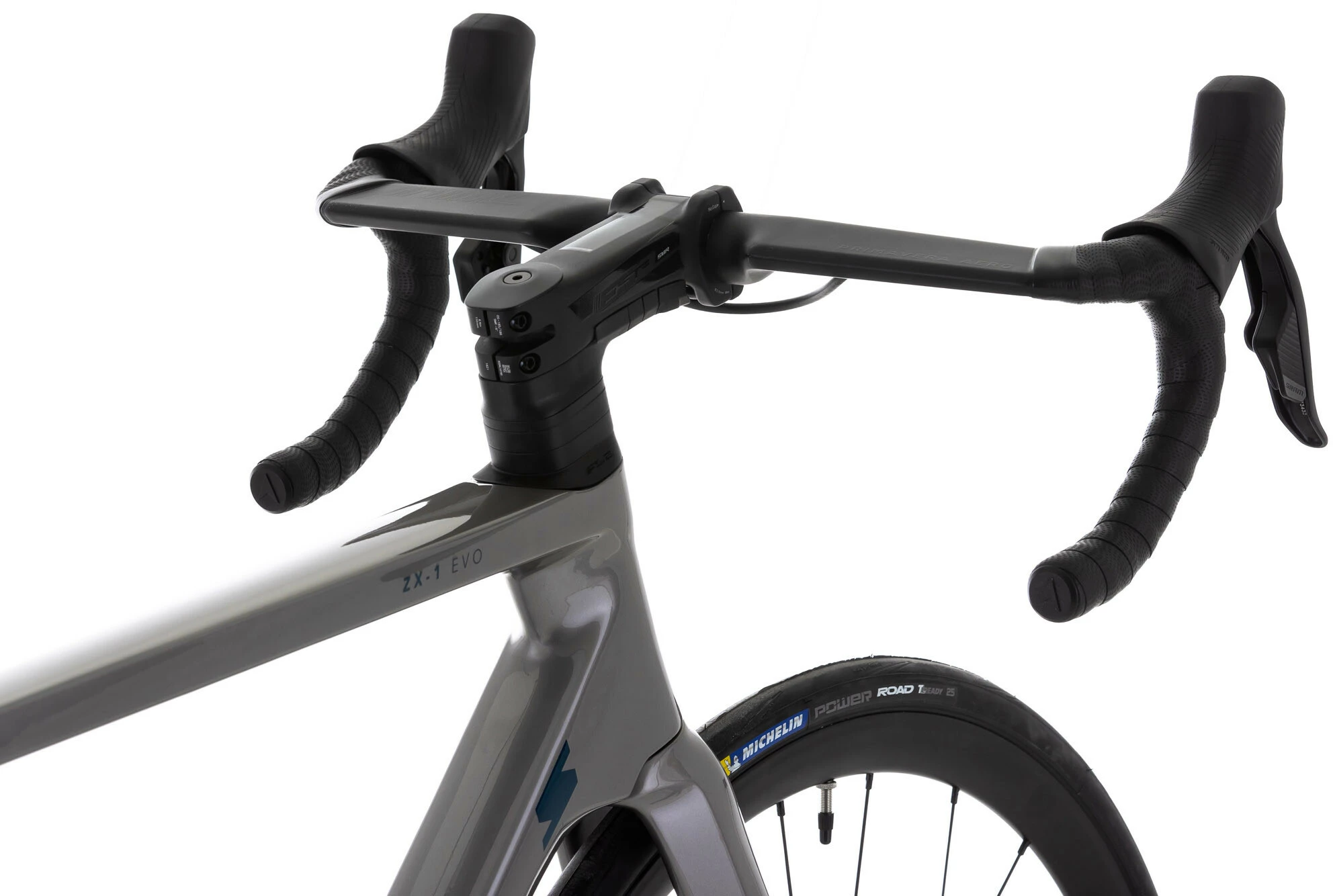 ZX-1 EVO forsømmer ikke alt til fordel for hastigheden, da en ubehagelig kører ikke kan være hurtig og effektiv. I hvert fald ikke i lang tid. Takket være den etstemmige carbonmonocoque-ramme er der ingen svage punkter, ingen samlinger, så den er specielt udviklet til at være stiv, hvor det er nødvendigt, og levere komfort andre steder, hvilket reducerer hårdhed fra vejen og giver en mere beroligende kørefornemmelse. Der er ikke gået på kompromis med ydeevnen med denne konstruktion. Du får SRAM’s nyeste trådløse RIVAL eTap-gruppe, Prime carbonhjul og integreret carbonforstam og -styr for at holde forenden slank, så intet er ude i vinden. Resultatet? En cykel med en fantastisk ren æstetik, der skærer gennem luften med enestående effektivitet.
